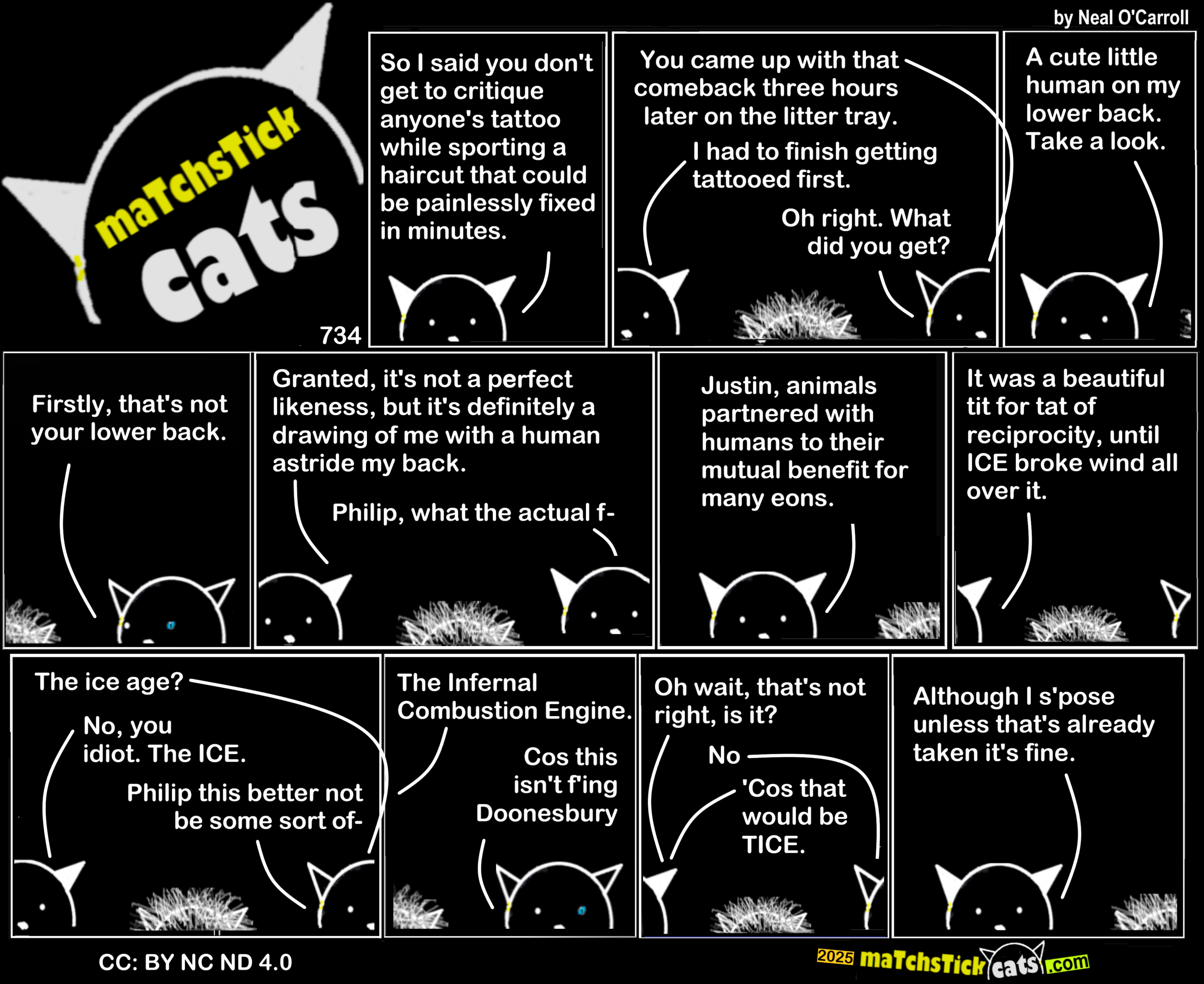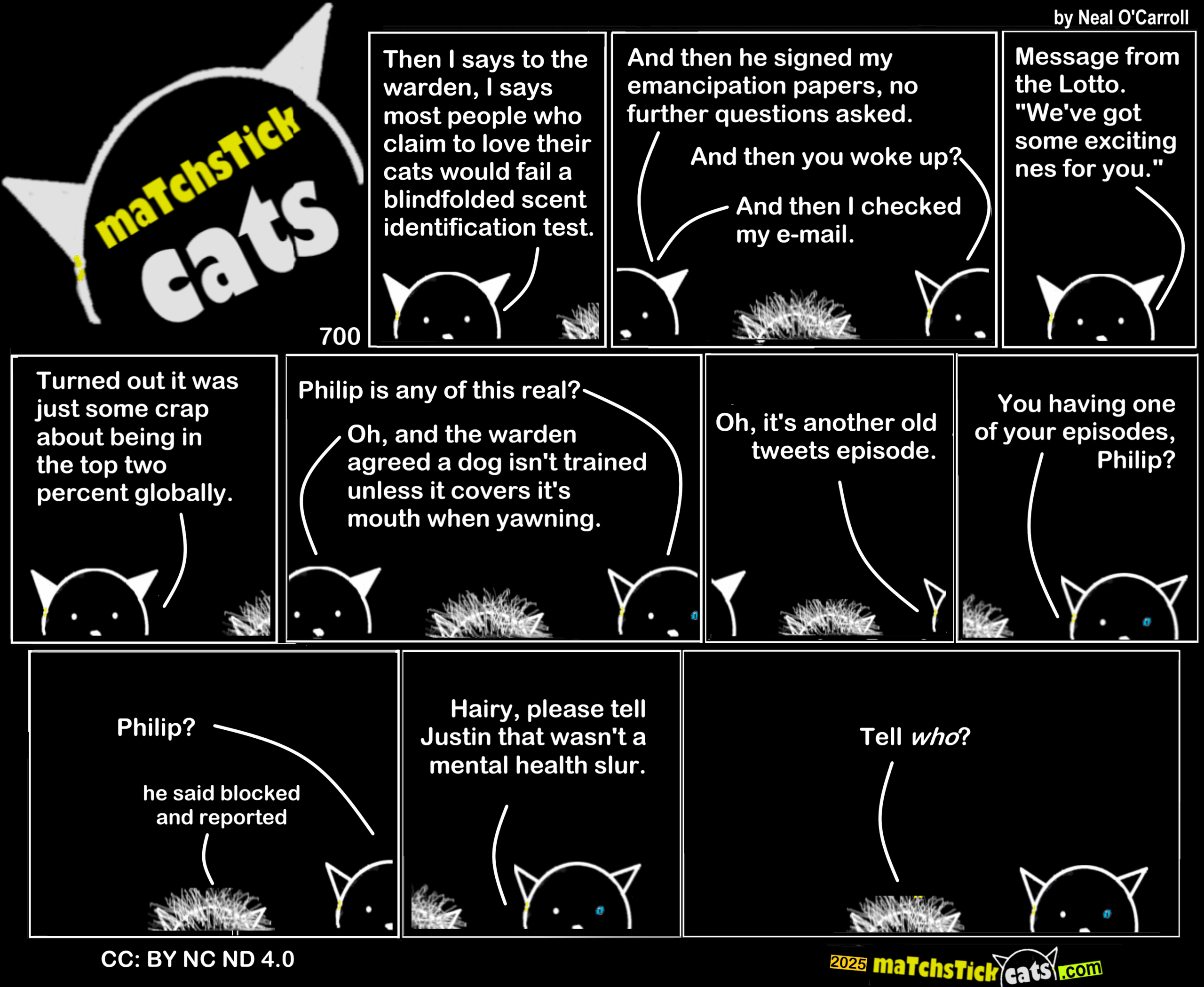 Matchstick Cats 733: Pseudonym       10 December 202510 December 2025 Share this post: Click to share on Bluesky (Opens in new window) Bluesky Click to share on Threads (Opens in new window) Threads Click to share on X (Opens in new window) X Click to share on Mastodon (Opens in new window) Mastodon Click to share on Facebook (Opens in new window) Facebook Click to share on LinkedIn (Opens in new window) LinkedIn Click to share on Tumblr (Opens in new window) Tumblr Click to share on Reddit (Opens in new window) Reddit Click to share on Pinterest (Opens in new window) Pinterest Click to share on WhatsApp (Opens in new window) WhatsApp Click to share on Pocket (Opens in new window) Pocket