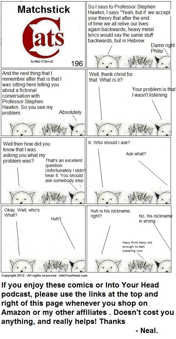 Vintage IYH – 622: Moustachio Nuts 24 September 20127 June 2025 https://IntoYourHead.ie/show622.mp3Podcast: Play in new window | Download (Duration: 28:37 — 65.5MB)| Follow Podcast in Any App Neal discusses the problem with binary coffee, Professor Stephen Hawkins’s fast food franchise, Walt Disney’s suspended animation, whether Hitler had cats, serving alcohol in zoological gardens and more, and performs a thought control experiment on the listener. License: Creative Commons Attribution-NonCommercial-NoDerivs 4.0 International – Attribution: Neal O’Carroll via IntoYourHead.ie – Many episodes findable forever on Archive dot org. Share this post: Click to share on Bluesky (Opens in new window) Bluesky Click to share on Threads (Opens in new window) Threads Click to share on X (Opens in new window) X Click to share on Mastodon (Opens in new window) Mastodon Click to share on Facebook (Opens in new window) Facebook Click to share on LinkedIn (Opens in new window) LinkedIn Click to share on Tumblr (Opens in new window) Tumblr Click to share on Reddit (Opens in new window) Reddit Click to share on Pinterest (Opens in new window) Pinterest Click to share on WhatsApp (Opens in new window) WhatsApp Click to share on Pocket (Opens in new window) Pocket