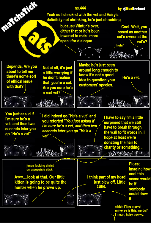 444: Breaking Cat 8 May 20214 September 2024 More Cats | All Episodes | Creative Commons | If you like swiping through comics in carousel form, try this page on Archive.org. < Share this post: Click to share on Bluesky (Opens in new window) Bluesky Click to share on Threads (Opens in new window) Threads Click to share on X (Opens in new window) X Click to share on Mastodon (Opens in new window) Mastodon Click to share on Facebook (Opens in new window) Facebook Click to share on LinkedIn (Opens in new window) LinkedIn Click to share on Tumblr (Opens in new window) Tumblr Click to share on Reddit (Opens in new window) Reddit Click to share on Pinterest (Opens in new window) Pinterest Click to share on WhatsApp (Opens in new window) WhatsApp Click to share on Pocket (Opens in new window) Pocket Related Catsegory