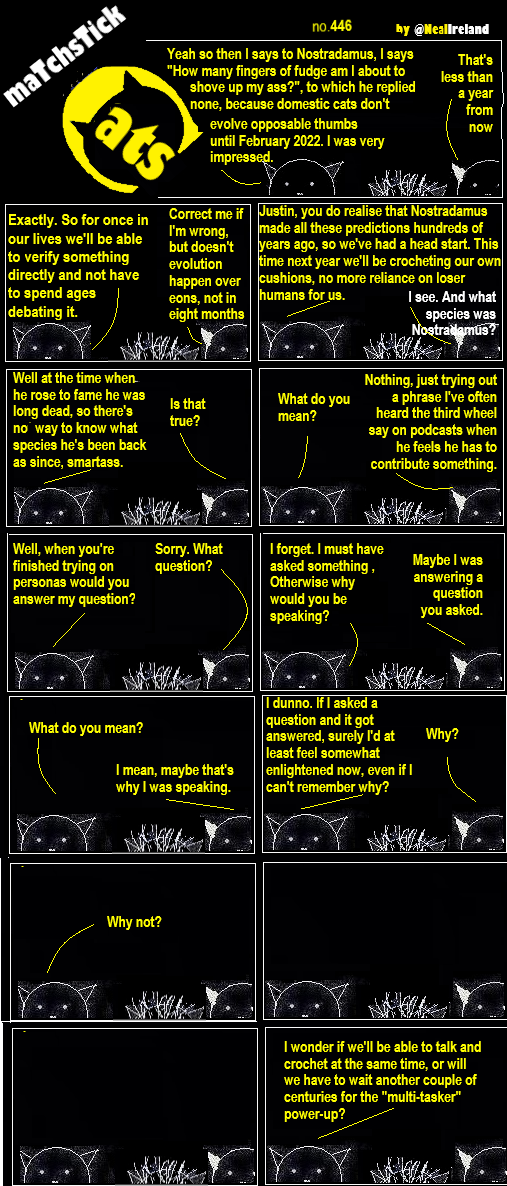 446 – Nostradamus on Cat Evolution 10 May 20214 September 2024 More Cats | All Episodes | Creative Commons | If you like swiping through comics in carousel form, try this page on Archive.org. < Share this post: Click to share on Bluesky (Opens in new window) Bluesky Click to share on Threads (Opens in new window) Threads Click to share on X (Opens in new window) X Click to share on Mastodon (Opens in new window) Mastodon Click to share on Facebook (Opens in new window) Facebook Click to share on LinkedIn (Opens in new window) LinkedIn Click to share on Tumblr (Opens in new window) Tumblr Click to share on Reddit (Opens in new window) Reddit Click to share on Pinterest (Opens in new window) Pinterest Click to share on WhatsApp (Opens in new window) WhatsApp Click to share on Pocket (Opens in new window) Pocket Related Catsegory