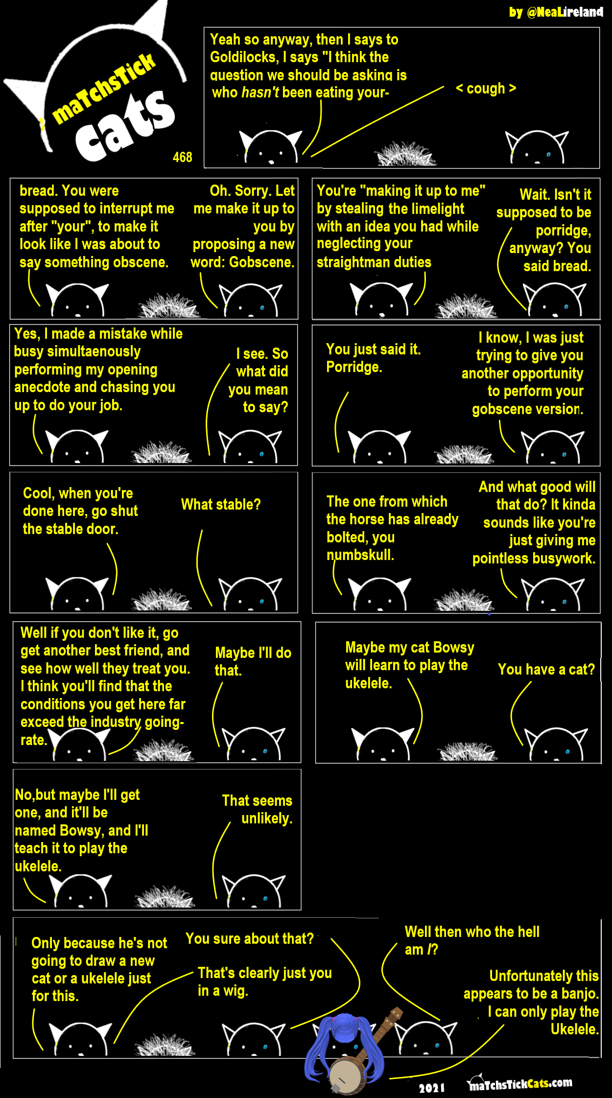 468: Goldilocks and the Duplicat 16 June 202120 February 2025 More Cats | All Episodes | Creative Commons | If you like swiping through comics in carousel form, try this page on Archive.org. < Share this post: Click to share on Bluesky (Opens in new window) Bluesky Click to share on Threads (Opens in new window) Threads Click to share on X (Opens in new window) X Click to share on Mastodon (Opens in new window) Mastodon Click to share on Facebook (Opens in new window) Facebook Click to share on LinkedIn (Opens in new window) LinkedIn Click to share on Tumblr (Opens in new window) Tumblr Click to share on Reddit (Opens in new window) Reddit Click to share on Pinterest (Opens in new window) Pinterest Click to share on WhatsApp (Opens in new window) WhatsApp Click to share on Pocket (Opens in new window) Pocket Related Catsegory w