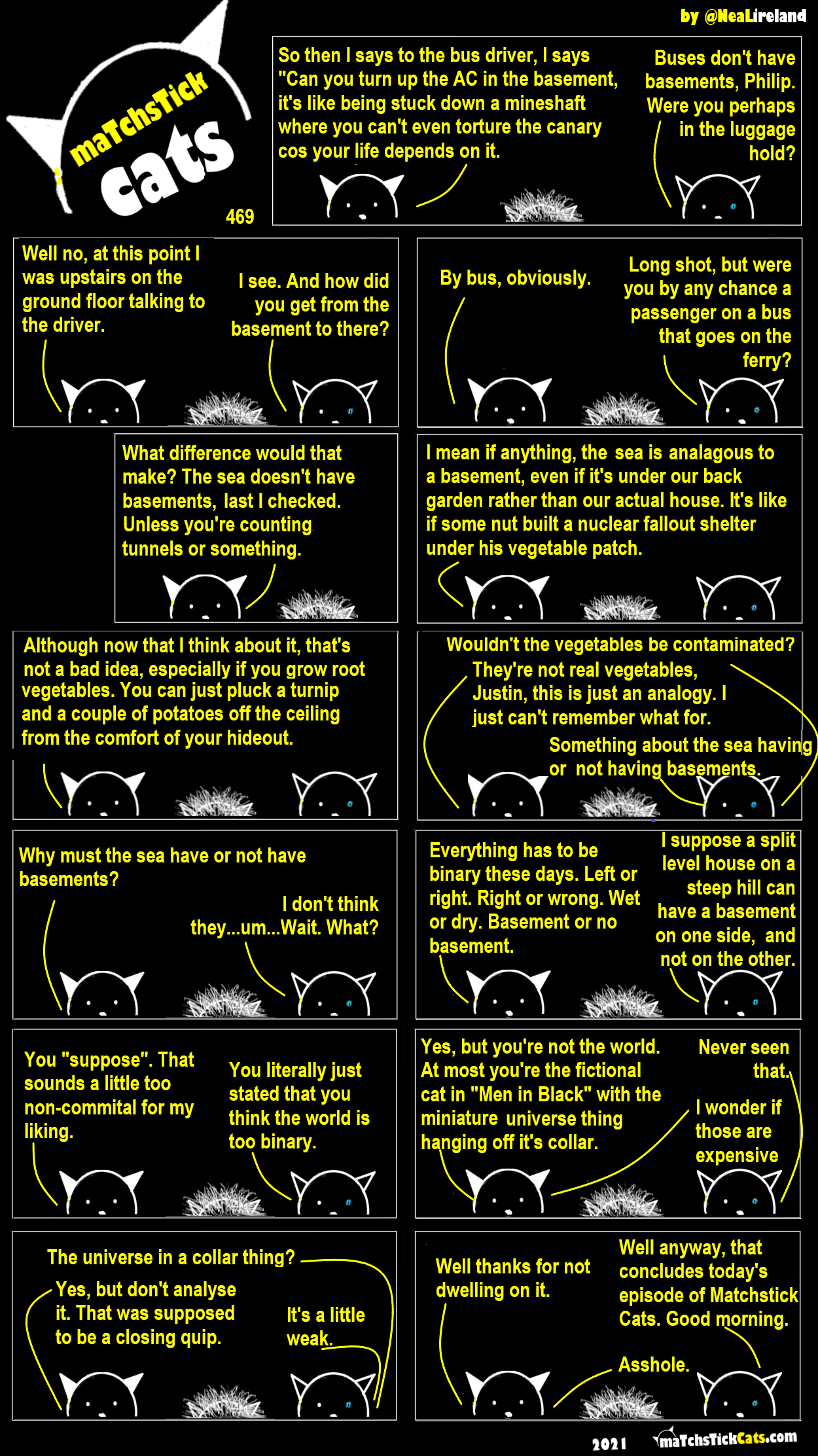 469: The Fallout Shelter 18 June 202120 February 2025 More Cats | All Episodes | Creative Commons | If you like swiping through comics in carousel form, try this page on Archive.org. < Share this post: Click to share on Bluesky (Opens in new window) Bluesky Click to share on Threads (Opens in new window) Threads Click to share on X (Opens in new window) X Click to share on Mastodon (Opens in new window) Mastodon Click to share on Facebook (Opens in new window) Facebook Click to share on LinkedIn (Opens in new window) LinkedIn Click to share on Tumblr (Opens in new window) Tumblr Click to share on Reddit (Opens in new window) Reddit Click to share on Pinterest (Opens in new window) Pinterest Click to share on WhatsApp (Opens in new window) WhatsApp Click to share on Pocket (Opens in new window) Pocket Related Catsegory w