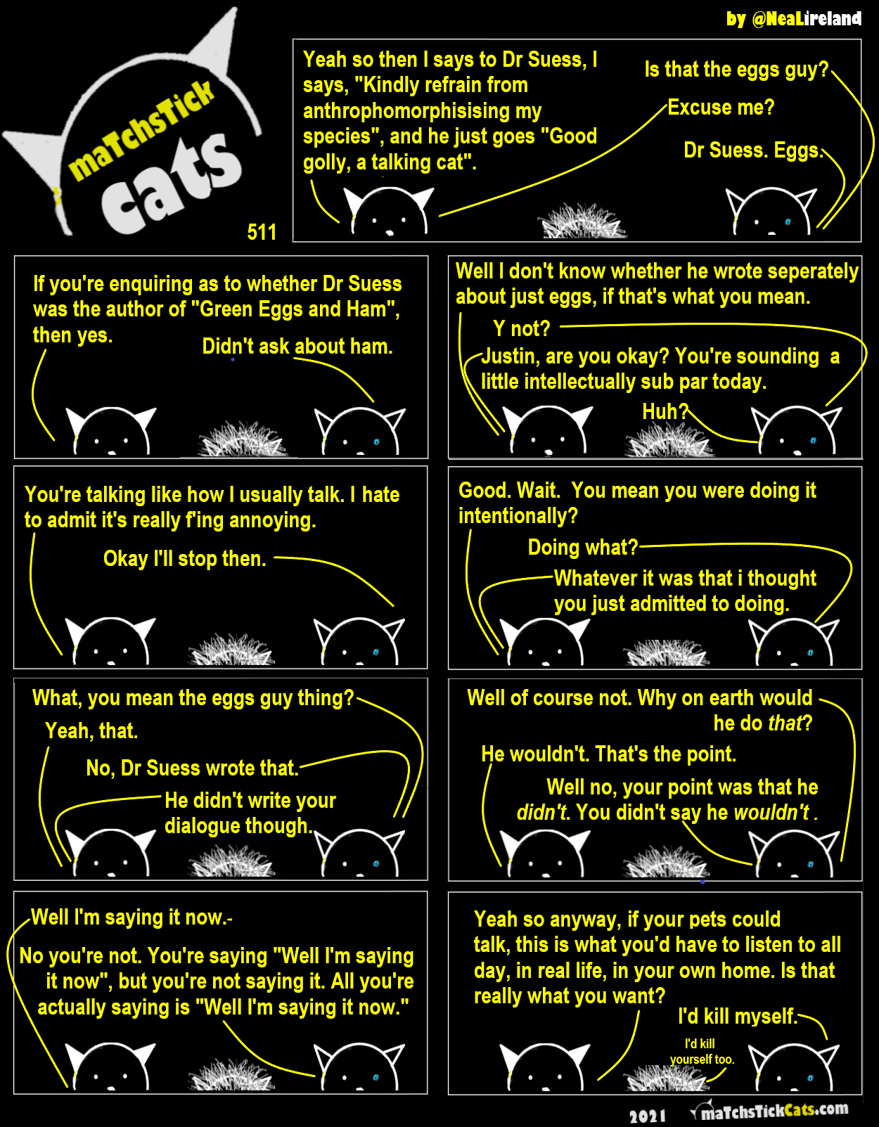 511: The Eggs Guy Thing 22 August 20214 September 2024 More Cats | All Episodes | Creative Commons | If you like swiping through comics in carousel form, try this page on Archive.org. < Share this post: Click to share on Bluesky (Opens in new window) Bluesky Click to share on Threads (Opens in new window) Threads Click to share on X (Opens in new window) X Click to share on Mastodon (Opens in new window) Mastodon Click to share on Facebook (Opens in new window) Facebook Click to share on LinkedIn (Opens in new window) LinkedIn Click to share on Tumblr (Opens in new window) Tumblr Click to share on Reddit (Opens in new window) Reddit Click to share on Pinterest (Opens in new window) Pinterest Click to share on WhatsApp (Opens in new window) WhatsApp Click to share on Pocket (Opens in new window) Pocket Related Catsegory