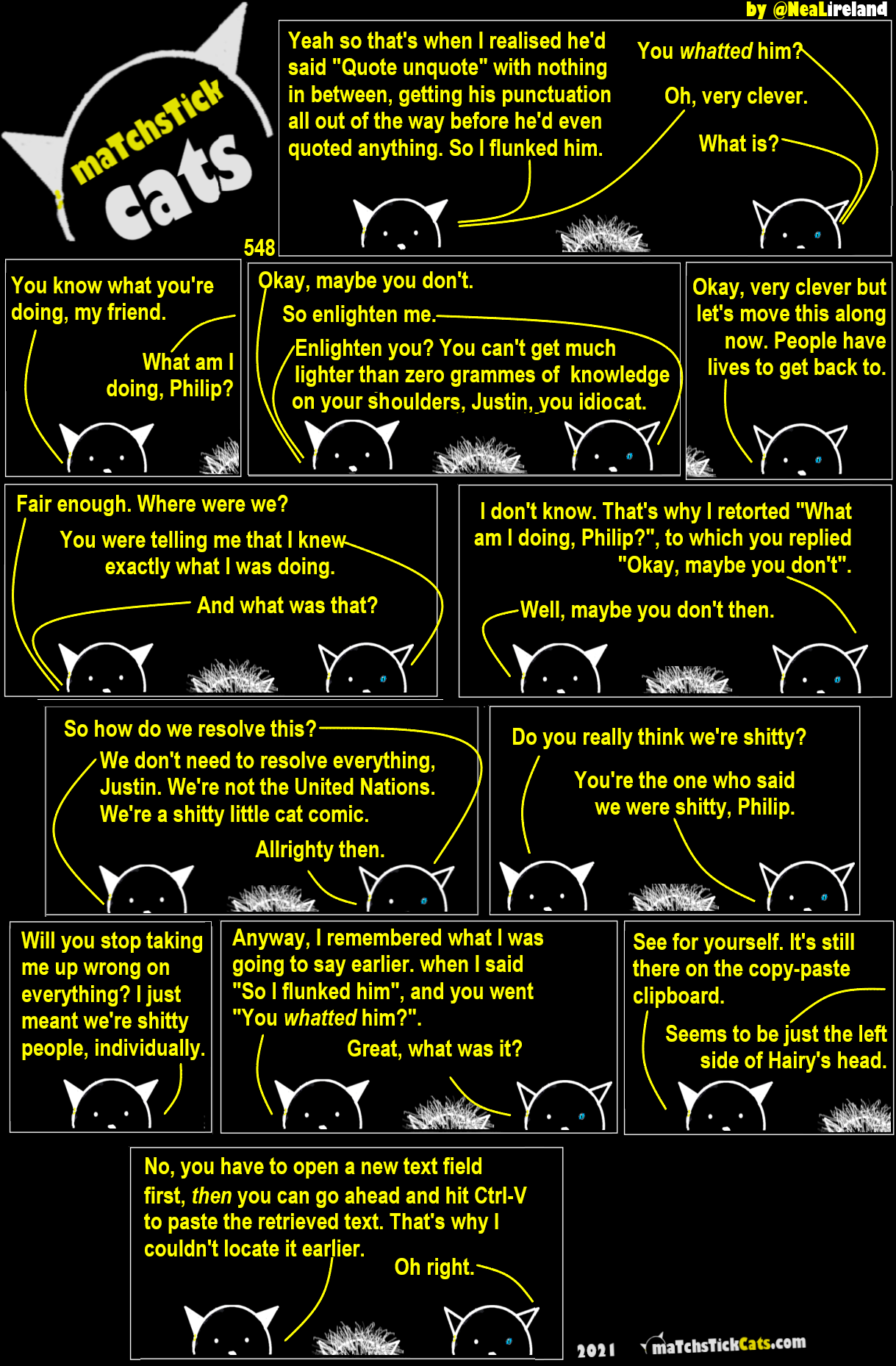 548: Creative Indifferences 3 December 20214 September 2024 More Cats | All Episodes | Creative Commons | If you like swiping through comics in carousel form, try this page on Archive.org. < Share this post: Click to share on Bluesky (Opens in new window) Bluesky Click to share on Threads (Opens in new window) Threads Click to share on X (Opens in new window) X Click to share on Mastodon (Opens in new window) Mastodon Click to share on Facebook (Opens in new window) Facebook Click to share on LinkedIn (Opens in new window) LinkedIn Click to share on Tumblr (Opens in new window) Tumblr Click to share on Reddit (Opens in new window) Reddit Click to share on Pinterest (Opens in new window) Pinterest Click to share on WhatsApp (Opens in new window) WhatsApp Click to share on Pocket (Opens in new window) Pocket Related Catsegory