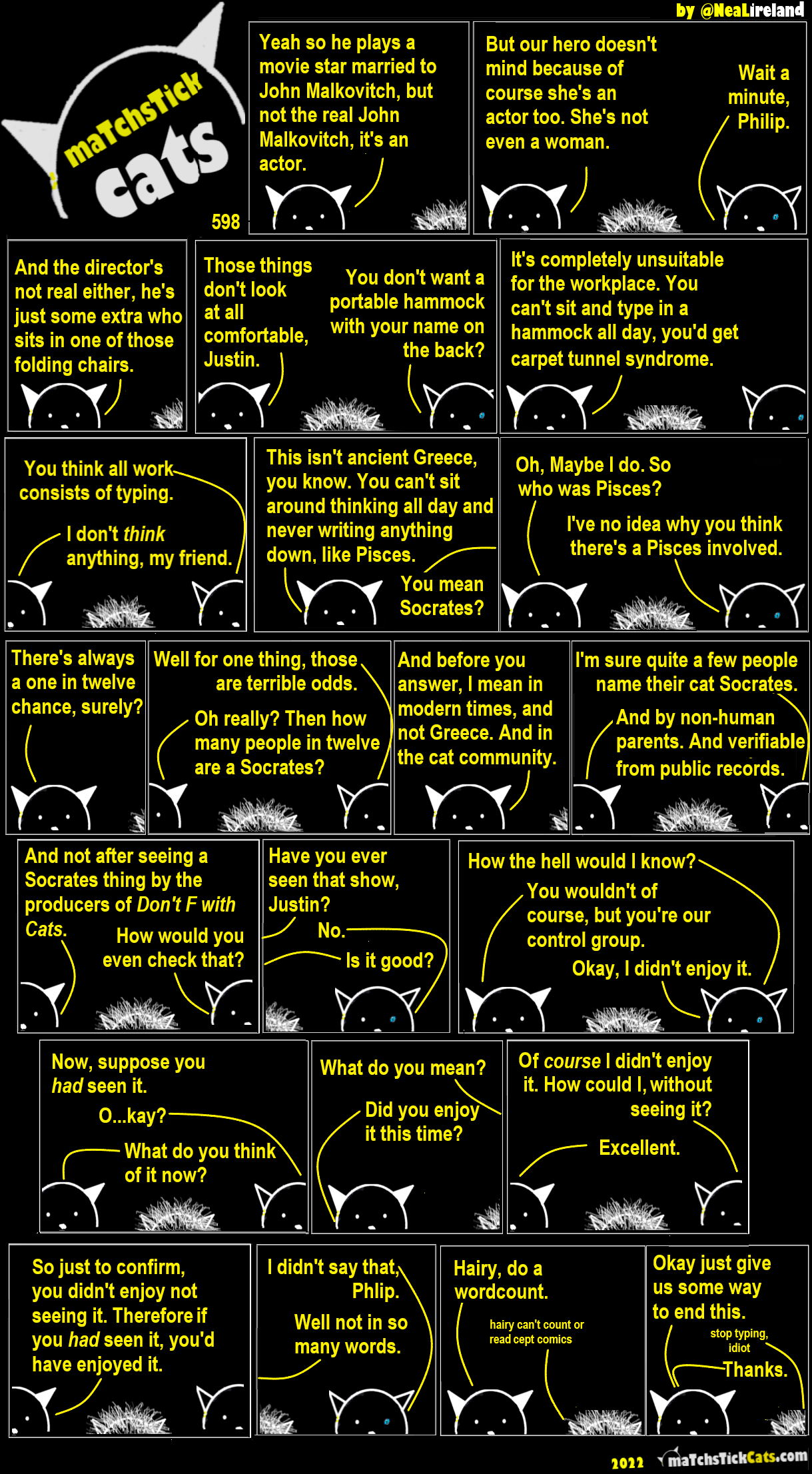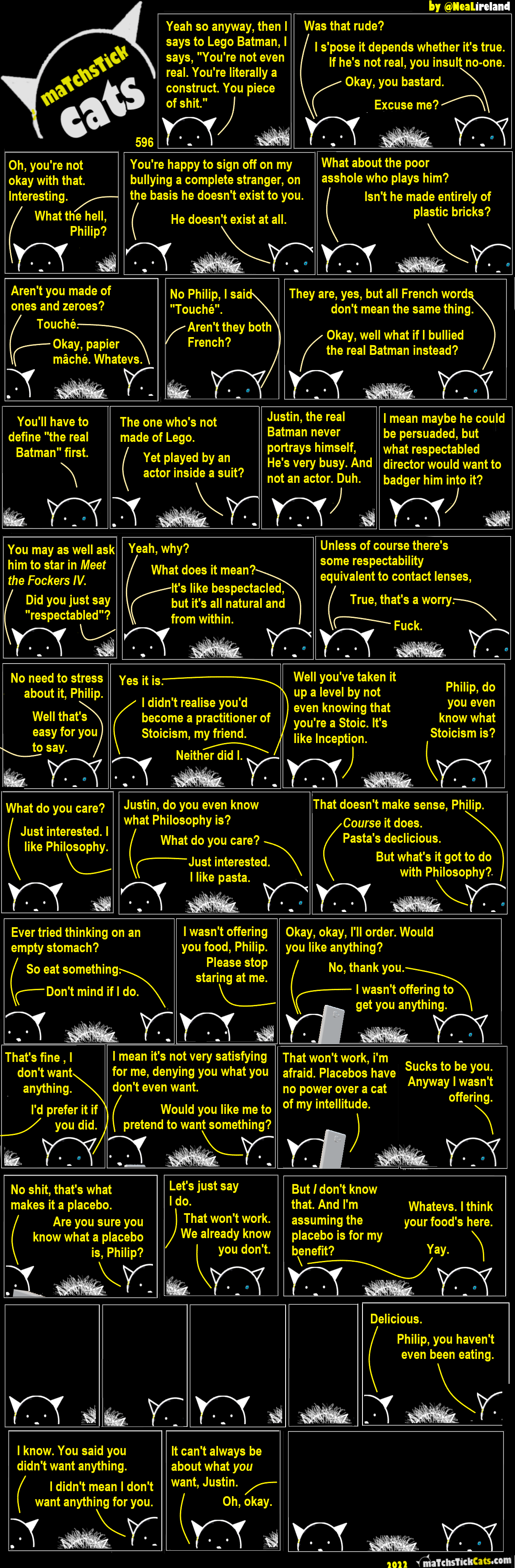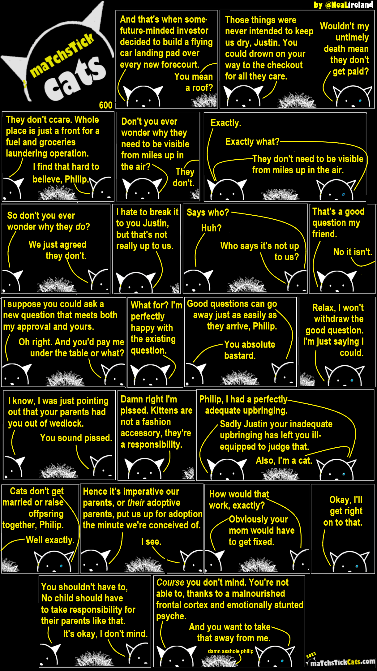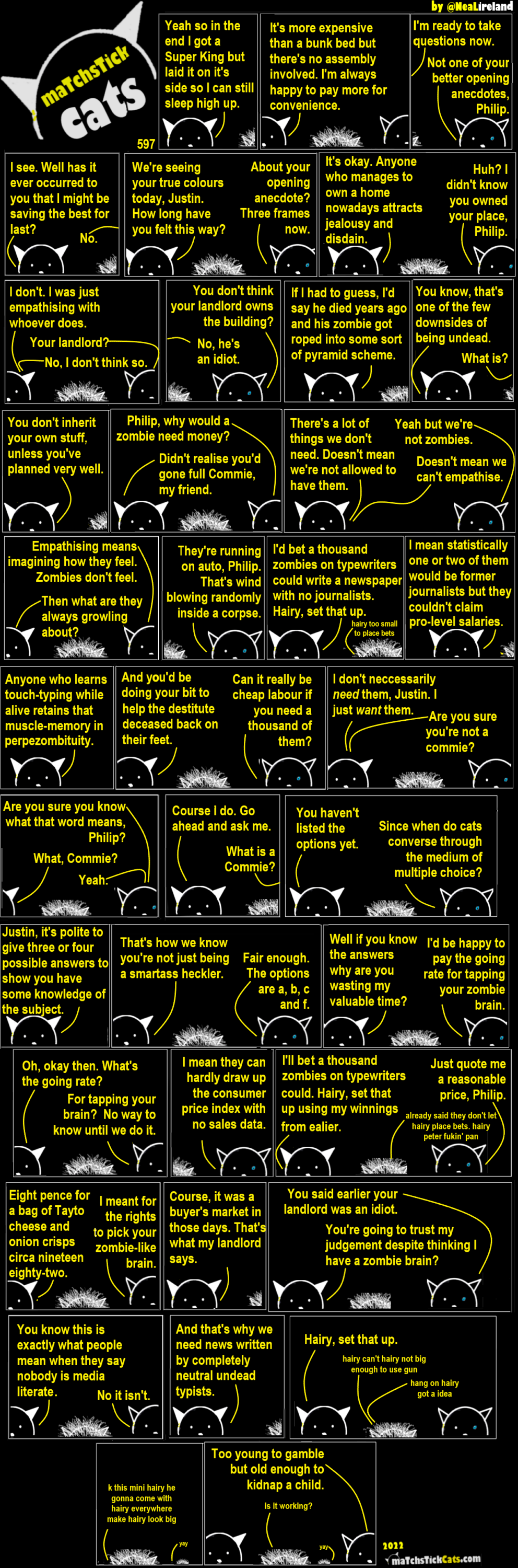 Matchsitck Cats 599: The Hunger Strikes 27 October 202213 November 2024 Share this post: Click to share on Bluesky (Opens in new window) Bluesky Click to share on Threads (Opens in new window) Threads Click to share on X (Opens in new window) X Click to share on Mastodon (Opens in new window) Mastodon Click to share on Facebook (Opens in new window) Facebook Click to share on LinkedIn (Opens in new window) LinkedIn Click to share on Tumblr (Opens in new window) Tumblr Click to share on Reddit (Opens in new window) Reddit Click to share on Pinterest (Opens in new window) Pinterest Click to share on WhatsApp (Opens in new window) WhatsApp Click to share on Pocket (Opens in new window) Pocket