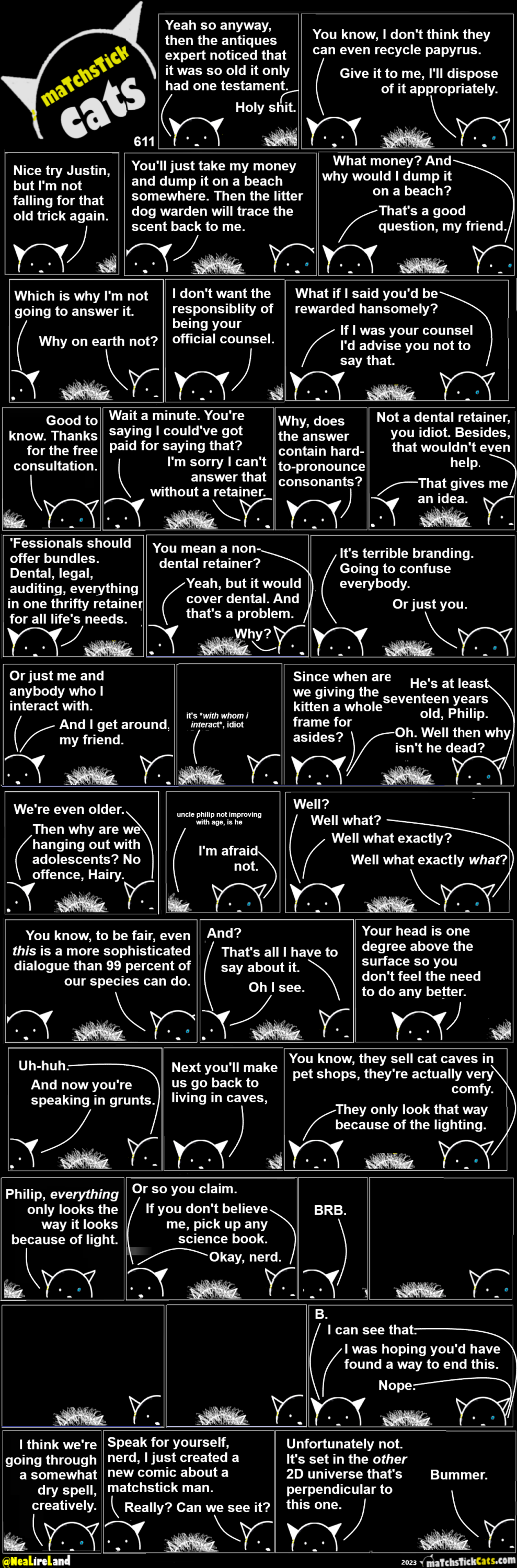 Matchstick Cats 611: The Super-Retainer 3 February 202313 November 2024 Share this post: Click to share on Bluesky (Opens in new window) Bluesky Click to share on Threads (Opens in new window) Threads Click to share on X (Opens in new window) X Click to share on Mastodon (Opens in new window) Mastodon Click to share on Facebook (Opens in new window) Facebook Click to share on LinkedIn (Opens in new window) LinkedIn Click to share on Tumblr (Opens in new window) Tumblr Click to share on Reddit (Opens in new window) Reddit Click to share on Pinterest (Opens in new window) Pinterest Click to share on WhatsApp (Opens in new window) WhatsApp Click to share on Pocket (Opens in new window) Pocket
