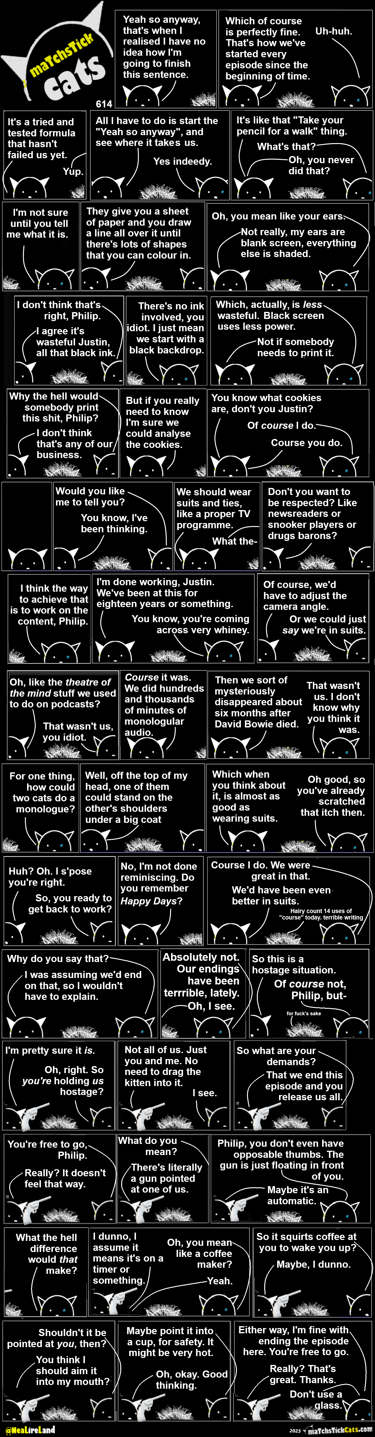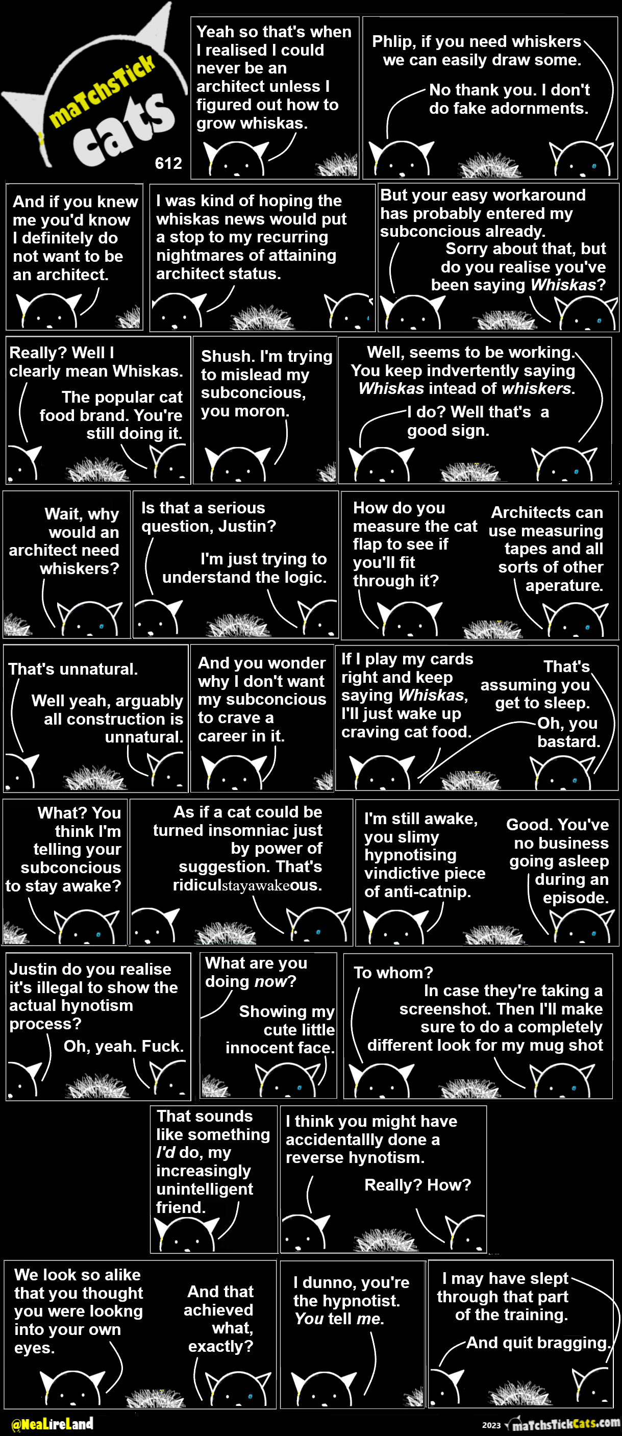 Matchstick Cats 614: The Situation 19 February 202313 November 2024 Share this post: Click to share on Bluesky (Opens in new window) Bluesky Click to share on Threads (Opens in new window) Threads Click to share on X (Opens in new window) X Click to share on Mastodon (Opens in new window) Mastodon Click to share on Facebook (Opens in new window) Facebook Click to share on LinkedIn (Opens in new window) LinkedIn Click to share on Tumblr (Opens in new window) Tumblr Click to share on Reddit (Opens in new window) Reddit Click to share on Pinterest (Opens in new window) Pinterest Click to share on WhatsApp (Opens in new window) WhatsApp Click to share on Pocket (Opens in new window) Pocket
