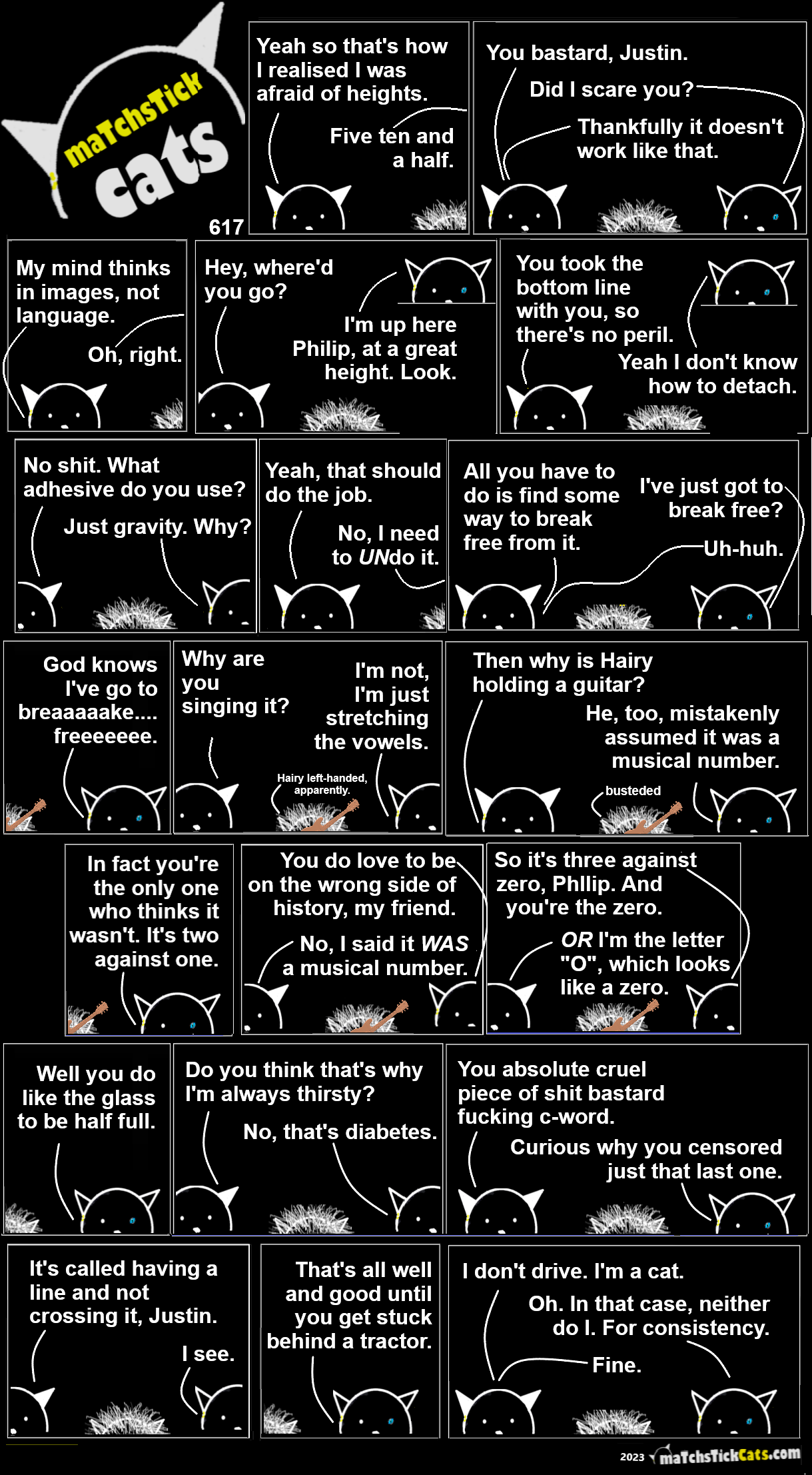 Matchstick Cats 618: The Mistake 16 April 202313 November 2024 Share this post: Click to share on Bluesky (Opens in new window) Bluesky Click to share on Threads (Opens in new window) Threads Click to share on X (Opens in new window) X Click to share on Mastodon (Opens in new window) Mastodon Click to share on Facebook (Opens in new window) Facebook Click to share on LinkedIn (Opens in new window) LinkedIn Click to share on Tumblr (Opens in new window) Tumblr Click to share on Reddit (Opens in new window) Reddit Click to share on Pinterest (Opens in new window) Pinterest Click to share on WhatsApp (Opens in new window) WhatsApp Click to share on Pocket (Opens in new window) Pocket