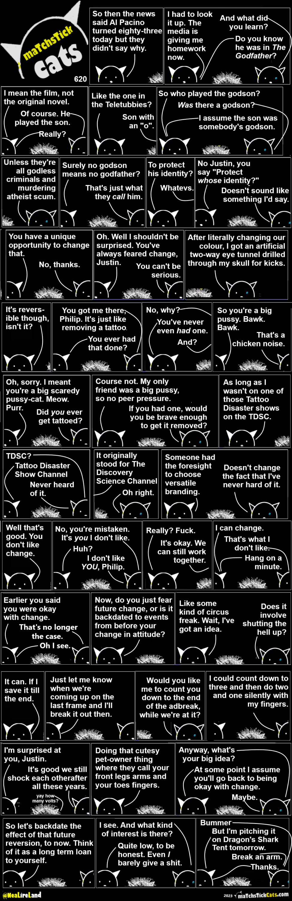 Matchstick Cats 620: The Change 5 May 202313 November 2024 Share this post: Click to share on Bluesky (Opens in new window) Bluesky Click to share on Threads (Opens in new window) Threads Click to share on X (Opens in new window) X Click to share on Mastodon (Opens in new window) Mastodon Click to share on Facebook (Opens in new window) Facebook Click to share on LinkedIn (Opens in new window) LinkedIn Click to share on Tumblr (Opens in new window) Tumblr Click to share on Reddit (Opens in new window) Reddit Click to share on Pinterest (Opens in new window) Pinterest Click to share on WhatsApp (Opens in new window) WhatsApp Click to share on Pocket (Opens in new window) Pocket