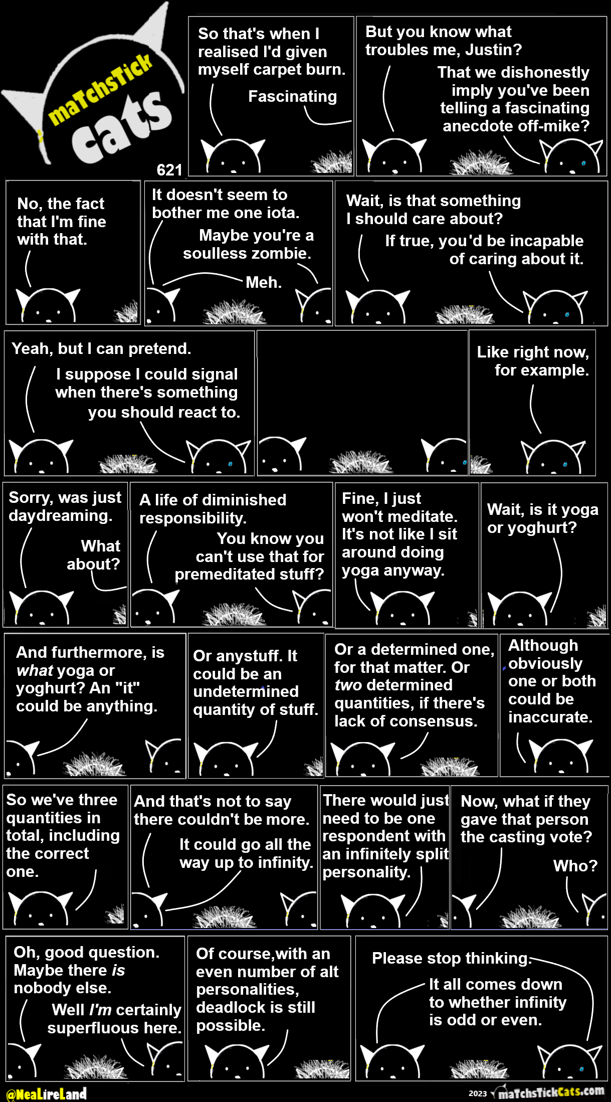 Matchstick Cats 621: Burning Carpet 13 May 202313 November 2024 Share this post: Click to share on Bluesky (Opens in new window) Bluesky Click to share on Threads (Opens in new window) Threads Click to share on X (Opens in new window) X Click to share on Mastodon (Opens in new window) Mastodon Click to share on Facebook (Opens in new window) Facebook Click to share on LinkedIn (Opens in new window) LinkedIn Click to share on Tumblr (Opens in new window) Tumblr Click to share on Reddit (Opens in new window) Reddit Click to share on Pinterest (Opens in new window) Pinterest Click to share on WhatsApp (Opens in new window) WhatsApp Click to share on Pocket (Opens in new window) Pocket