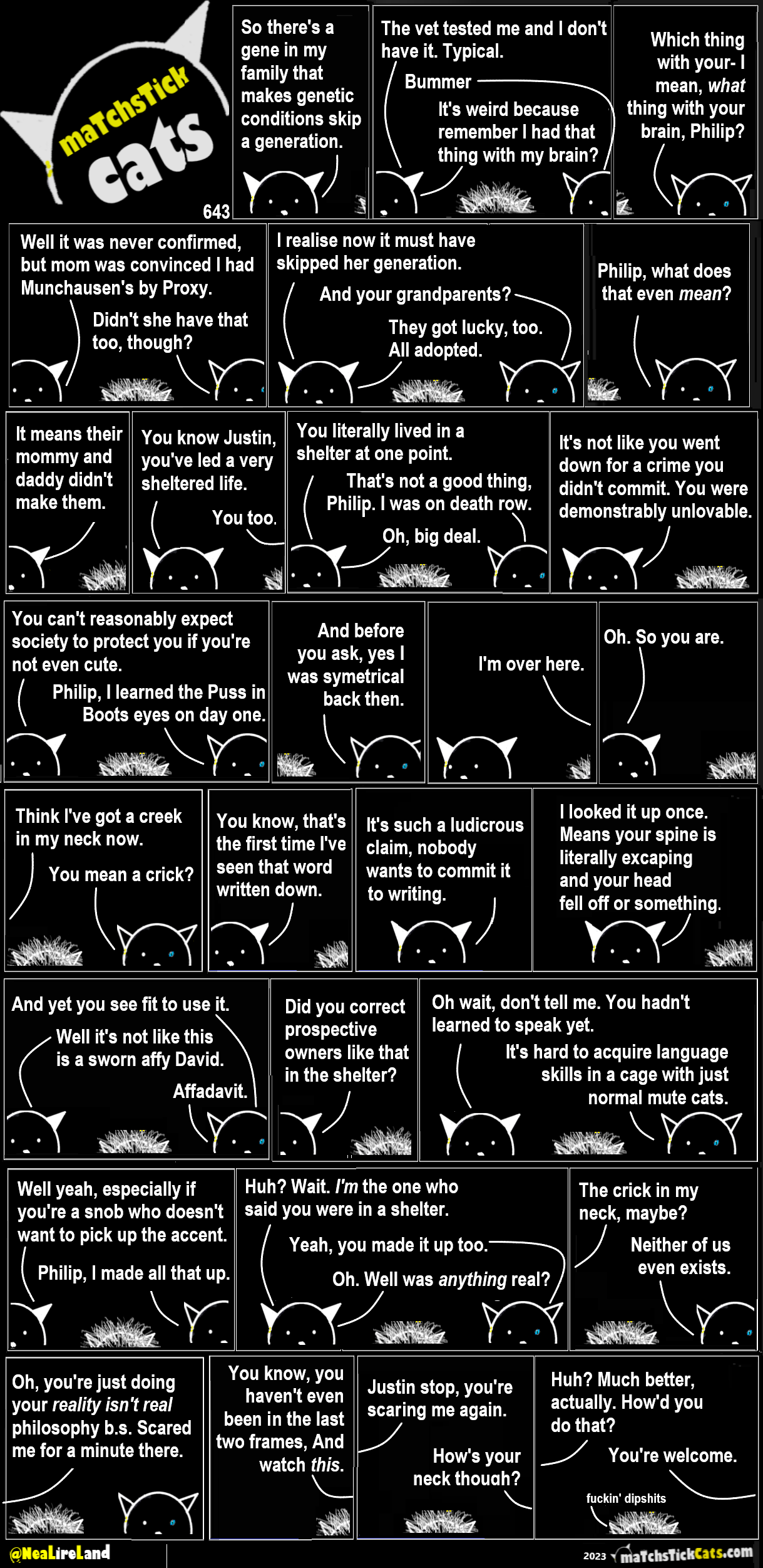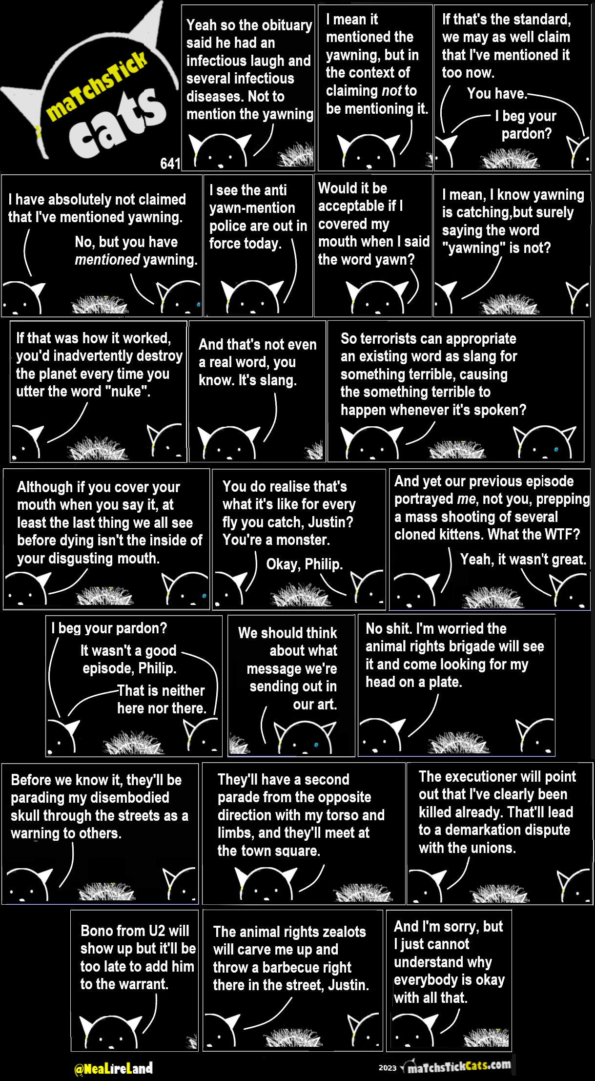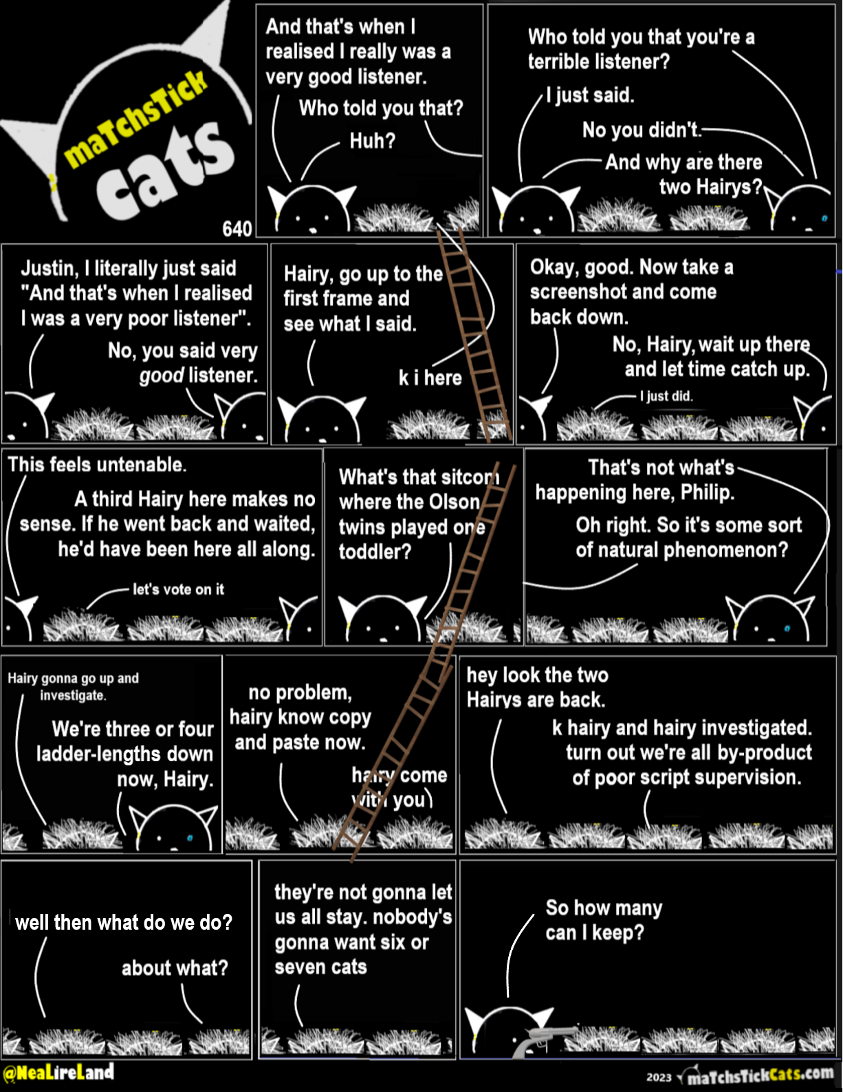 Matchstick Cats 642: The Brouhaha 7 September 202313 November 2024 Share this post: Click to share on Bluesky (Opens in new window) Bluesky Click to share on Threads (Opens in new window) Threads Click to share on X (Opens in new window) X Click to share on Mastodon (Opens in new window) Mastodon Click to share on Facebook (Opens in new window) Facebook Click to share on LinkedIn (Opens in new window) LinkedIn Click to share on Tumblr (Opens in new window) Tumblr Click to share on Reddit (Opens in new window) Reddit Click to share on Pinterest (Opens in new window) Pinterest Click to share on WhatsApp (Opens in new window) WhatsApp Click to share on Pocket (Opens in new window) Pocket