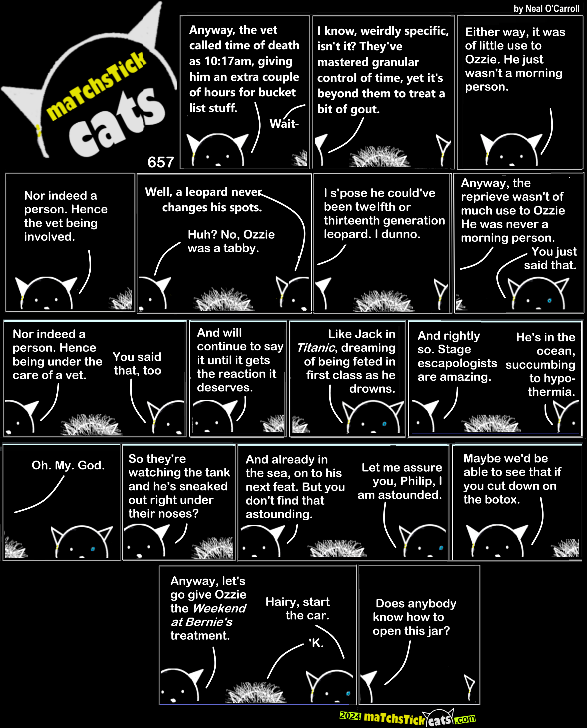 Matchstick Cats 657: Ozzie 12 September 202413 November 2024 More Cats | All Episodes | Creative Commons | If you like swiping through comics in carousel form, try this page on Archive.org. < Share this post: Click to share on Bluesky (Opens in new window) Bluesky Click to share on Threads (Opens in new window) Threads Click to share on X (Opens in new window) X Click to share on Mastodon (Opens in new window) Mastodon Click to share on Facebook (Opens in new window) Facebook Click to share on LinkedIn (Opens in new window) LinkedIn Click to share on Tumblr (Opens in new window) Tumblr Click to share on Reddit (Opens in new window) Reddit Click to share on Pinterest (Opens in new window) Pinterest Click to share on WhatsApp (Opens in new window) WhatsApp Click to share on Pocket (Opens in new window) Pocket Related Catsegory