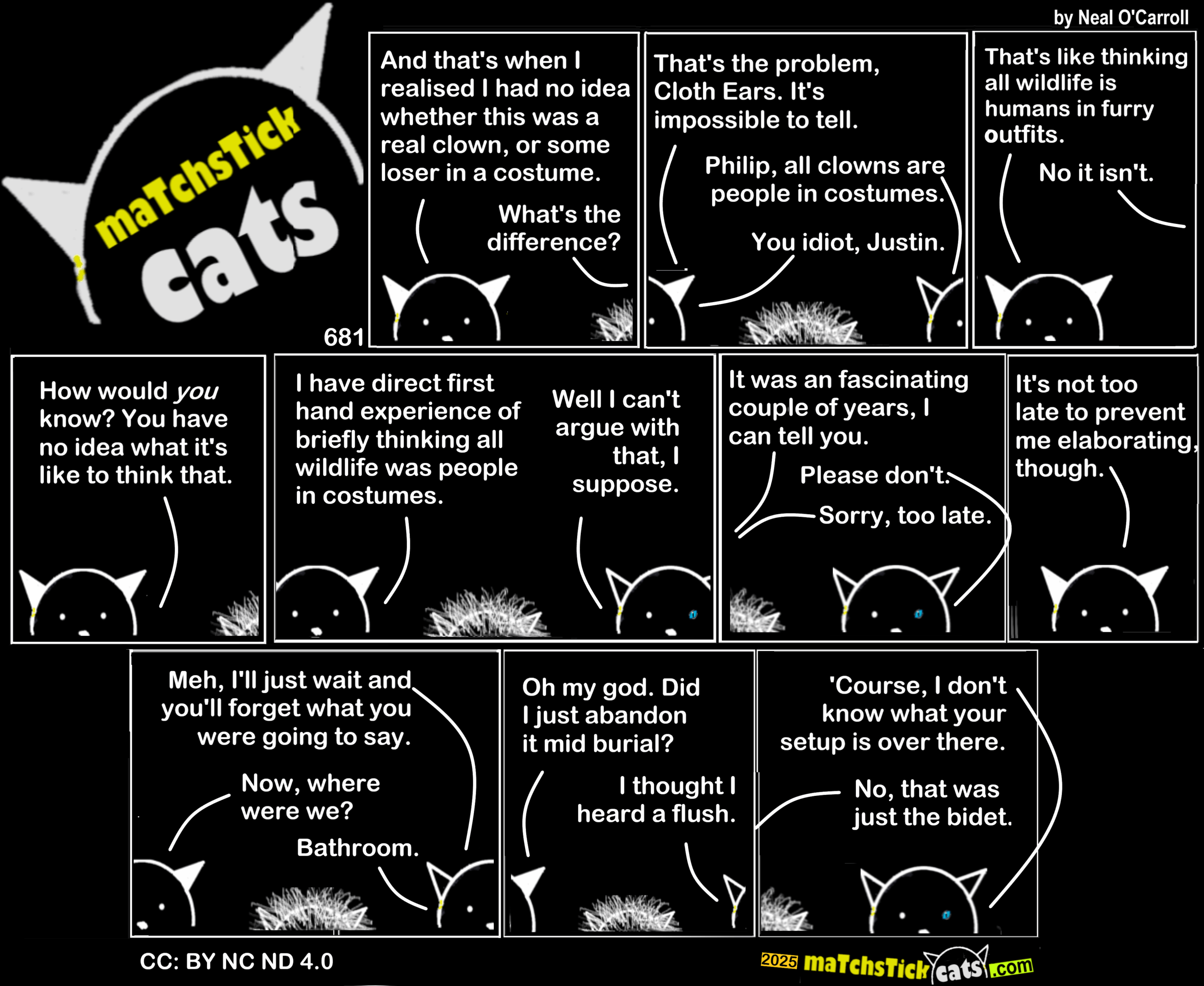 Matchstick Cats 681: Clown Bathroom 23 May 202523 May 2025 Share this post: Click to share on Bluesky (Opens in new window) Bluesky Click to share on Threads (Opens in new window) Threads Click to share on X (Opens in new window) X Click to share on Mastodon (Opens in new window) Mastodon Click to share on Facebook (Opens in new window) Facebook Click to share on LinkedIn (Opens in new window) LinkedIn Click to share on Tumblr (Opens in new window) Tumblr Click to share on Reddit (Opens in new window) Reddit Click to share on Pinterest (Opens in new window) Pinterest Click to share on WhatsApp (Opens in new window) WhatsApp Click to share on Pocket (Opens in new window) Pocket