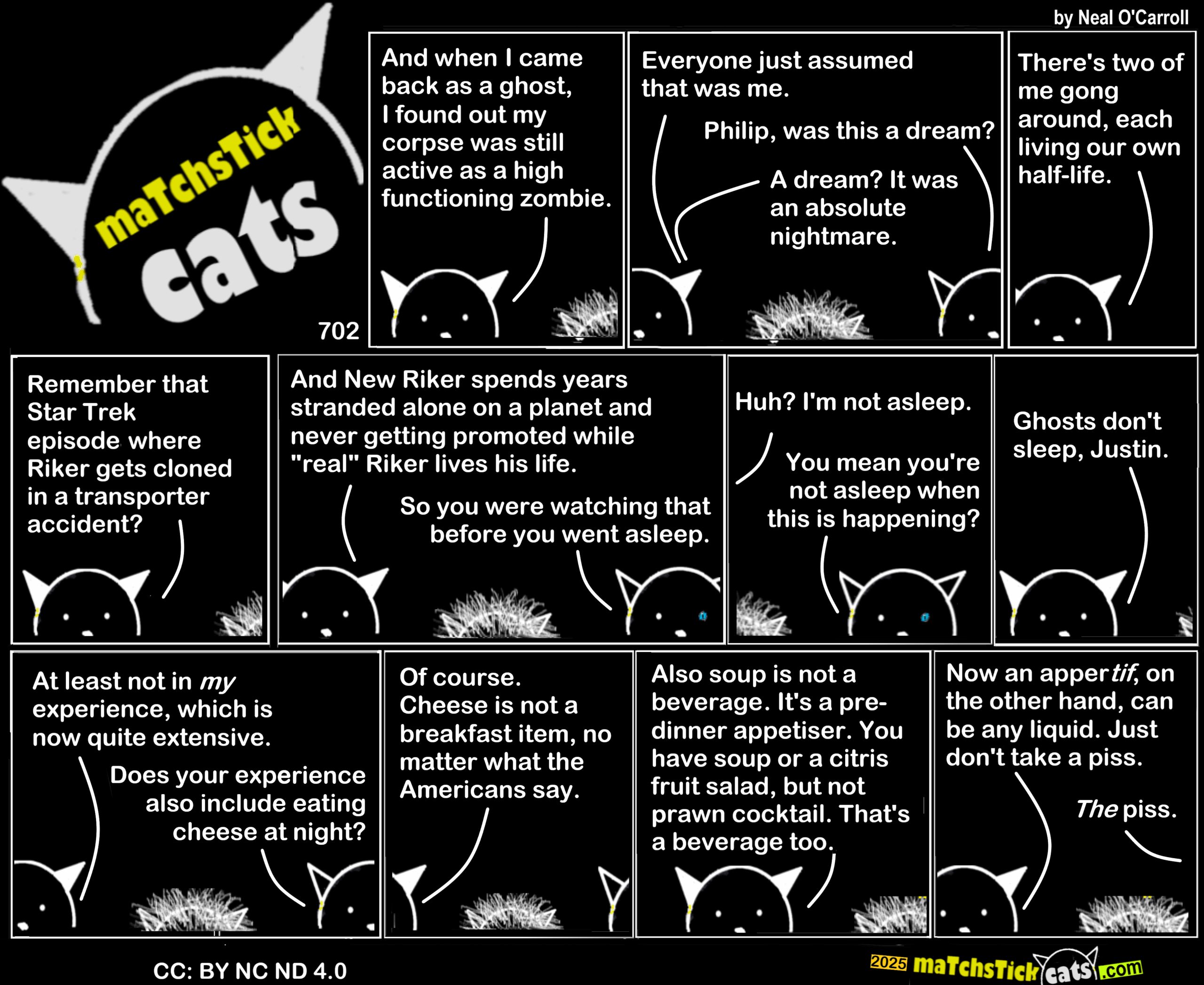 Matchstick Cats 702: Zombie 16 August 202516 August 2025 More Cats | All Episodes | Creative Commons | If you like swiping through comics in carousel form, try this page on Archive.org. < Share this post: Click to share on Bluesky (Opens in new window) Bluesky Click to share on Threads (Opens in new window) Threads Click to share on X (Opens in new window) X Click to share on Mastodon (Opens in new window) Mastodon Click to share on Facebook (Opens in new window) Facebook Click to share on LinkedIn (Opens in new window) LinkedIn Click to share on Tumblr (Opens in new window) Tumblr Click to share on Reddit (Opens in new window) Reddit Click to share on Pinterest (Opens in new window) Pinterest Click to share on WhatsApp (Opens in new window) WhatsApp Click to share on Pocket (Opens in new window) Pocket Related Catsegory