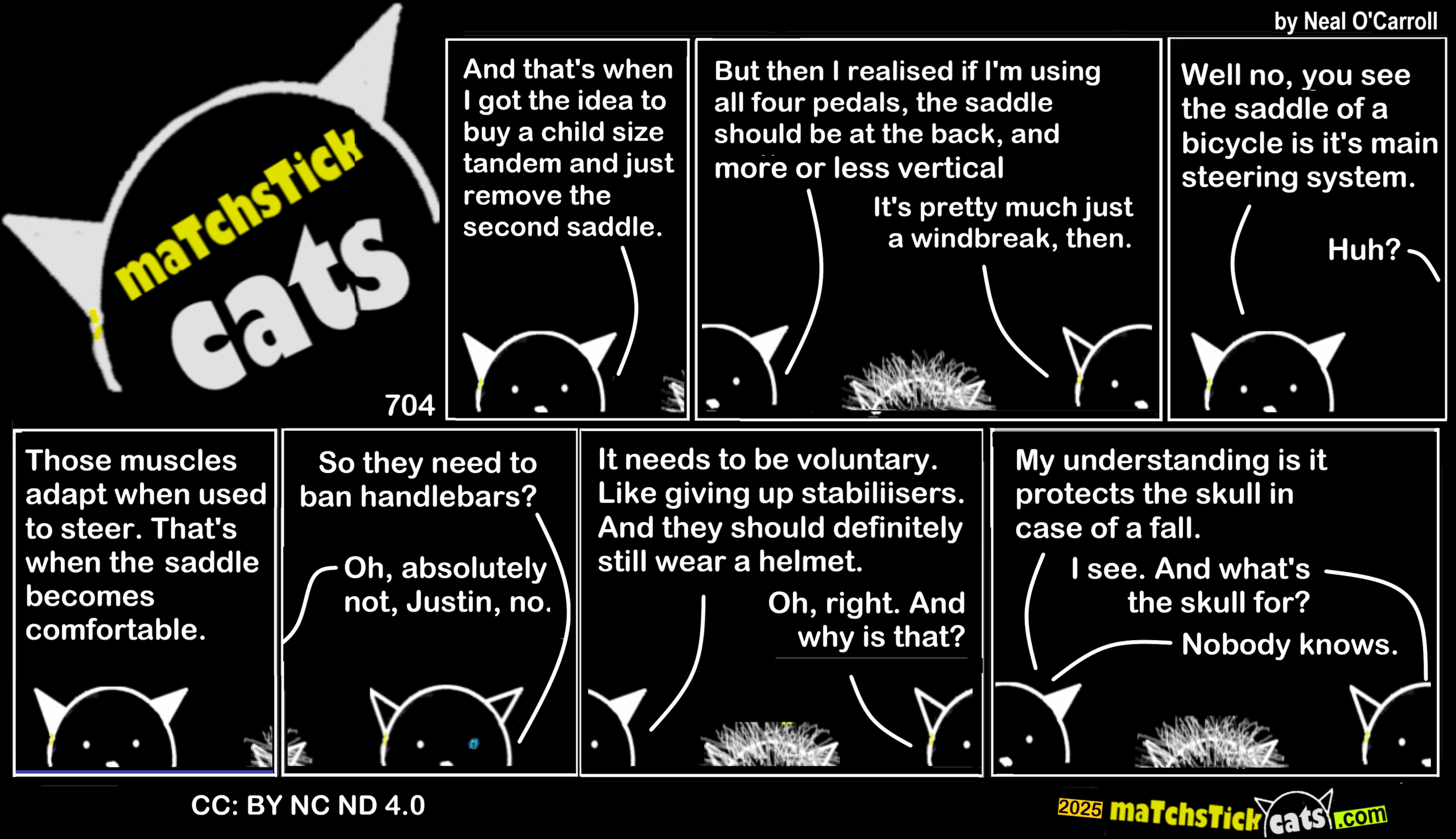 Matchstick Cats 704: You’re Using Your Bicycle Incorrectly 19 August 202519 August 2025 More Cats | All Episodes | Creative Commons | If you like swiping through comics in carousel form, try this page on Archive.org. < Share this post: Click to share on Bluesky (Opens in new window) Bluesky Click to share on Threads (Opens in new window) Threads Click to share on X (Opens in new window) X Click to share on Mastodon (Opens in new window) Mastodon Click to share on Facebook (Opens in new window) Facebook Click to share on LinkedIn (Opens in new window) LinkedIn Click to share on Tumblr (Opens in new window) Tumblr Click to share on Reddit (Opens in new window) Reddit Click to share on Pinterest (Opens in new window) Pinterest Click to share on WhatsApp (Opens in new window) WhatsApp Click to share on Pocket (Opens in new window) Pocket Related Catsegory