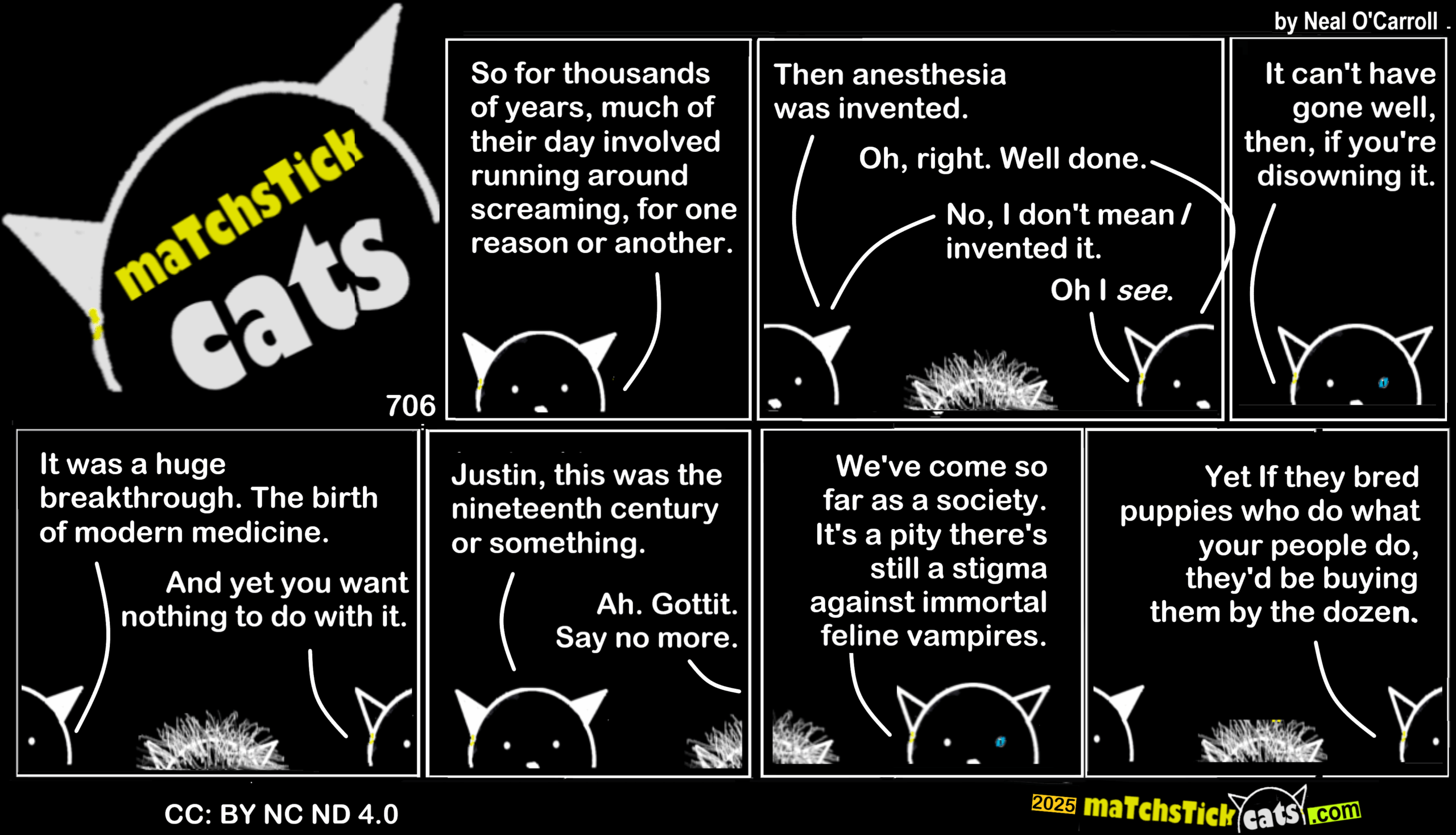 Matchstick Cats 706: Stigma 21 August 202521 August 2025 More Cats | All Episodes | Creative Commons | If you like swiping through comics in carousel form, try this page on Archive.org. < Share this post: Click to share on Bluesky (Opens in new window) Bluesky Click to share on Threads (Opens in new window) Threads Click to share on X (Opens in new window) X Click to share on Mastodon (Opens in new window) Mastodon Click to share on Facebook (Opens in new window) Facebook Click to share on LinkedIn (Opens in new window) LinkedIn Click to share on Tumblr (Opens in new window) Tumblr Click to share on Reddit (Opens in new window) Reddit Click to share on Pinterest (Opens in new window) Pinterest Click to share on WhatsApp (Opens in new window) WhatsApp Click to share on Pocket (Opens in new window) Pocket Related Catsegory
