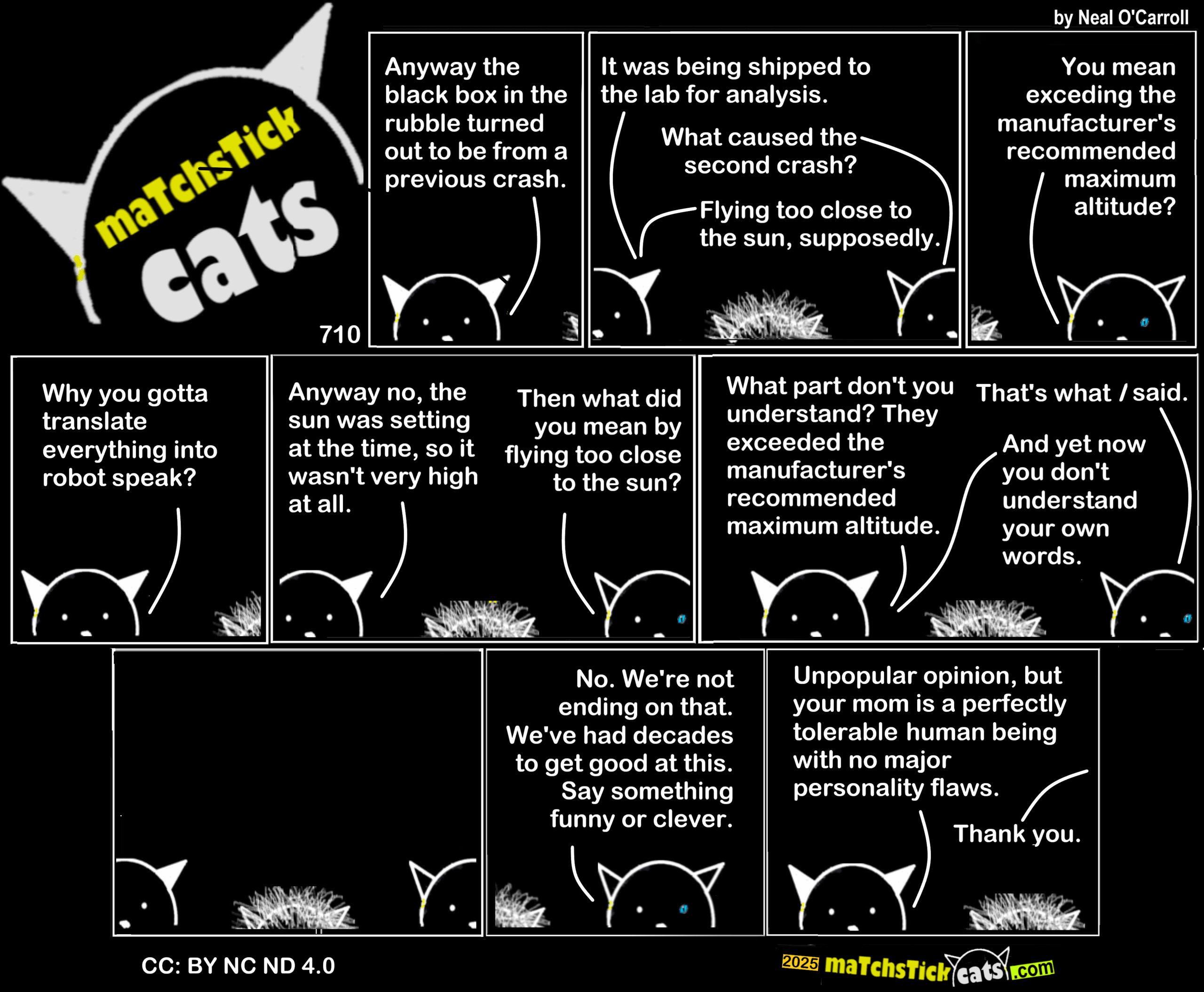 Matchstick Cats 710: Robot Speak 30 August 202530 August 2025 More Cats | All Episodes | Creative Commons | If you like swiping through comics in carousel form, try this page on Archive.org. < Share this post: Click to share on Bluesky (Opens in new window) Bluesky Click to share on Threads (Opens in new window) Threads Click to share on X (Opens in new window) X Click to share on Mastodon (Opens in new window) Mastodon Click to share on Facebook (Opens in new window) Facebook Click to share on LinkedIn (Opens in new window) LinkedIn Click to share on Tumblr (Opens in new window) Tumblr Click to share on Reddit (Opens in new window) Reddit Click to share on Pinterest (Opens in new window) Pinterest Click to share on WhatsApp (Opens in new window) WhatsApp Click to share on Pocket (Opens in new window) Pocket Related Catsegory