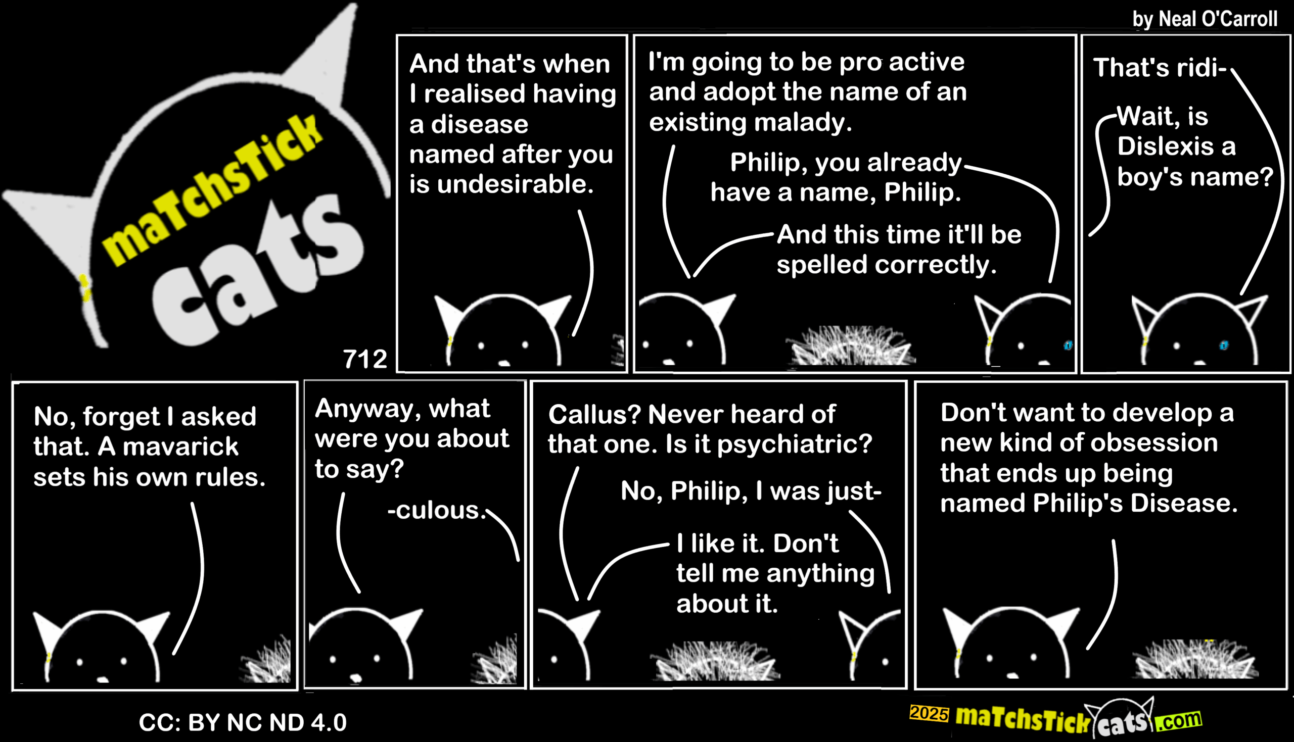 Matchstick Cats 712: Disease 2 September 20252 September 2025 More Cats | All Episodes | Creative Commons | If you like swiping through comics in carousel form, try this page on Archive.org. < Share this post: Click to share on Bluesky (Opens in new window) Bluesky Click to share on Threads (Opens in new window) Threads Click to share on X (Opens in new window) X Click to share on Mastodon (Opens in new window) Mastodon Click to share on Facebook (Opens in new window) Facebook Click to share on LinkedIn (Opens in new window) LinkedIn Click to share on Tumblr (Opens in new window) Tumblr Click to share on Reddit (Opens in new window) Reddit Click to share on Pinterest (Opens in new window) Pinterest Click to share on WhatsApp (Opens in new window) WhatsApp Click to share on Pocket (Opens in new window) Pocket Related Catsegory