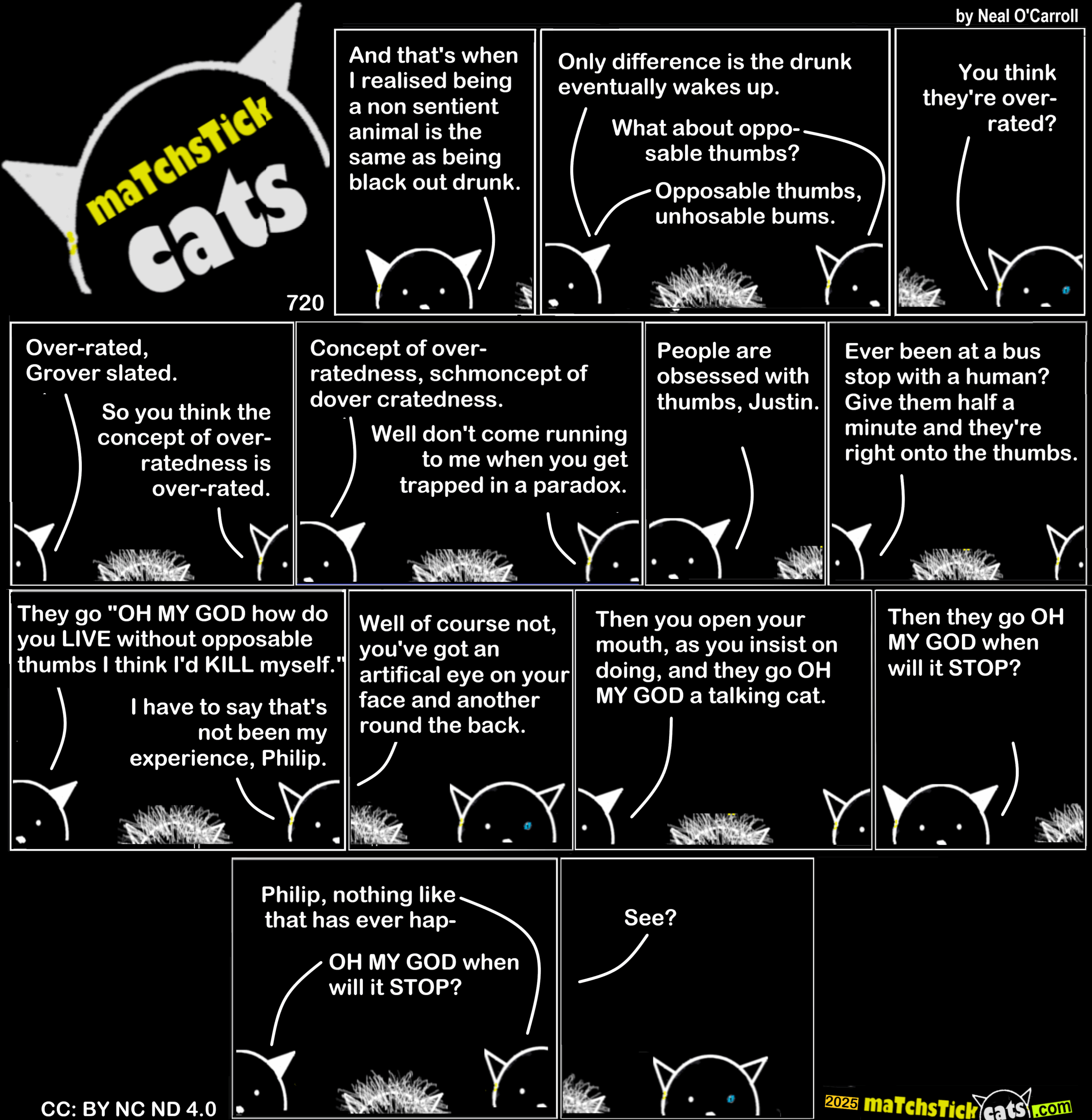 Matchstick Cats 720: Thumbs 3 November 20253 November 2025 More Cats | All Episodes | Creative Commons | If you like swiping through comics in carousel form, try this page on Archive.org. < Share this post: Click to share on Bluesky (Opens in new window) Bluesky Click to share on Threads (Opens in new window) Threads Click to share on X (Opens in new window) X Click to share on Mastodon (Opens in new window) Mastodon Click to share on Facebook (Opens in new window) Facebook Click to share on LinkedIn (Opens in new window) LinkedIn Click to share on Tumblr (Opens in new window) Tumblr Click to share on Reddit (Opens in new window) Reddit Click to share on Pinterest (Opens in new window) Pinterest Click to share on WhatsApp (Opens in new window) WhatsApp Click to share on Pocket (Opens in new window) Pocket Related Catsegory