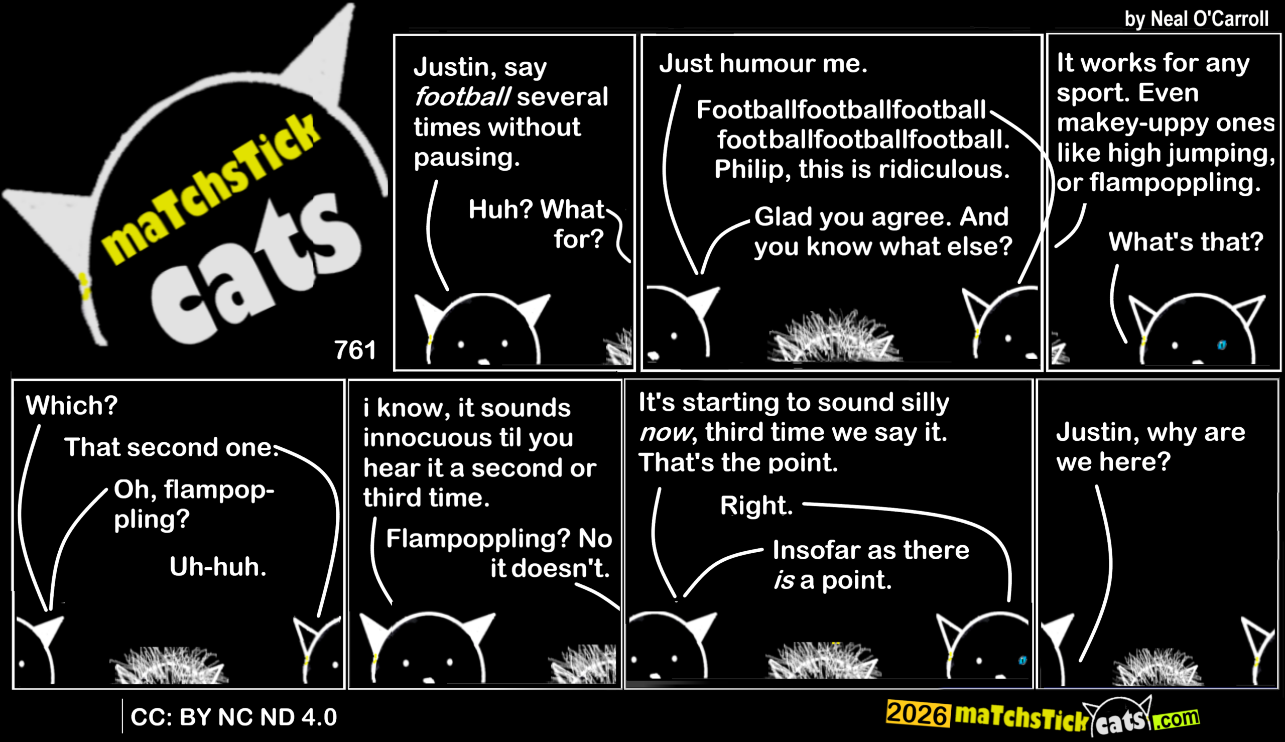 Matchstick Cats 761: Football 7 February 20266 February 2026 More Cats | All Episodes | Creative Commons | If you like swiping through comics in carousel form, try this page on Archive.org. Share this post: Share on Bluesky (Opens in new window) Bluesky Share on Threads (Opens in new window) Threads Share on X (Opens in new window) X Share on Mastodon (Opens in new window) Mastodon Share on Facebook (Opens in new window) Facebook Share on LinkedIn (Opens in new window) LinkedIn Share on Tumblr (Opens in new window) Tumblr Share on Reddit (Opens in new window) Reddit Share on Pinterest (Opens in new window) Pinterest Share on WhatsApp (Opens in new window) WhatsApp Share on Pocket (Opens in new window) Pocket Related Catsegory