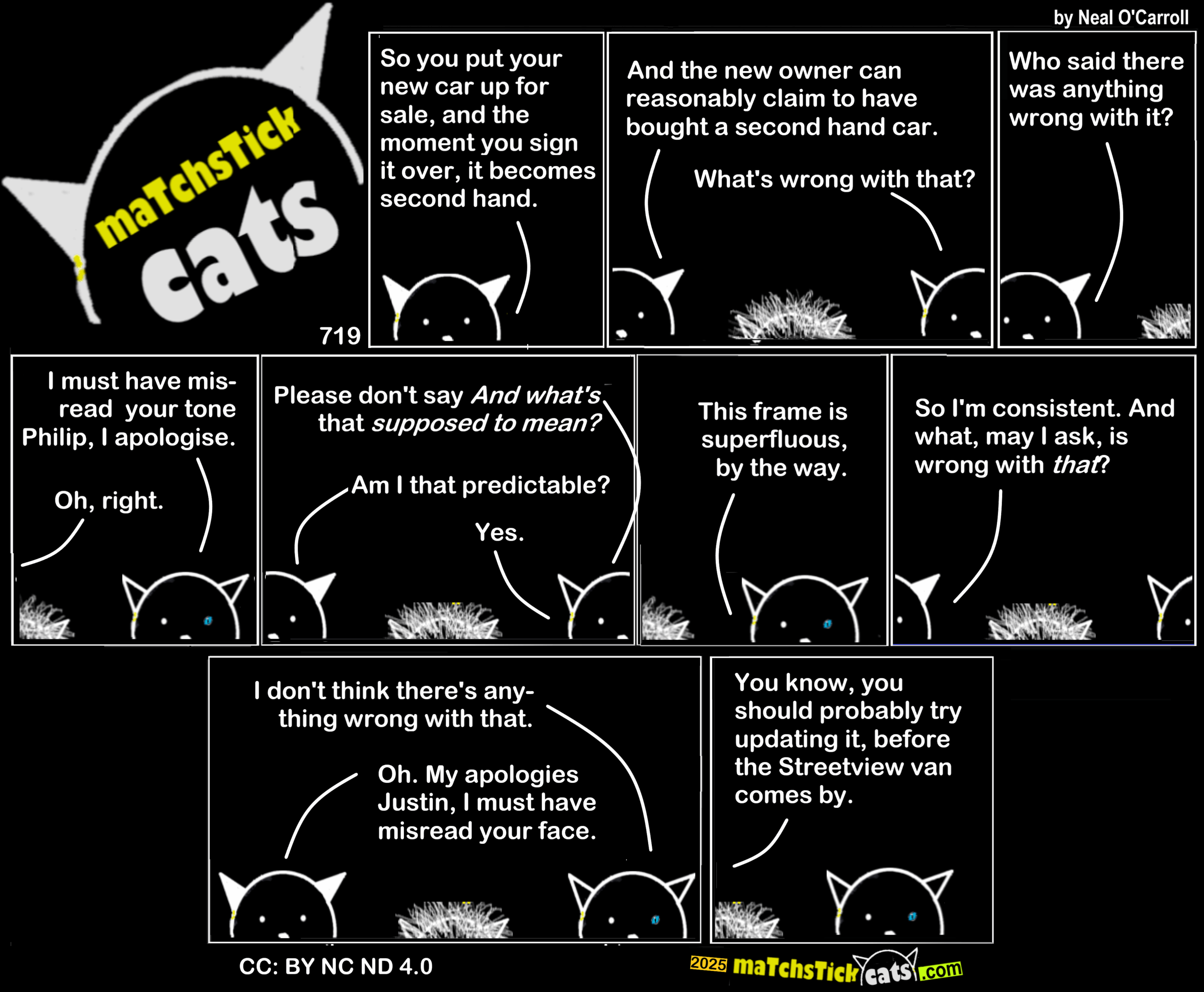 Matchstick Cats 719: The Van 1 November 20251 November 2025 Share this post: Click to share on Bluesky (Opens in new window) Bluesky Click to share on Threads (Opens in new window) Threads Click to share on X (Opens in new window) X Click to share on Mastodon (Opens in new window) Mastodon Click to share on Facebook (Opens in new window) Facebook Click to share on LinkedIn (Opens in new window) LinkedIn Click to share on Tumblr (Opens in new window) Tumblr Click to share on Reddit (Opens in new window) Reddit Click to share on Pinterest (Opens in new window) Pinterest Click to share on WhatsApp (Opens in new window) WhatsApp Click to share on Pocket (Opens in new window) Pocket
