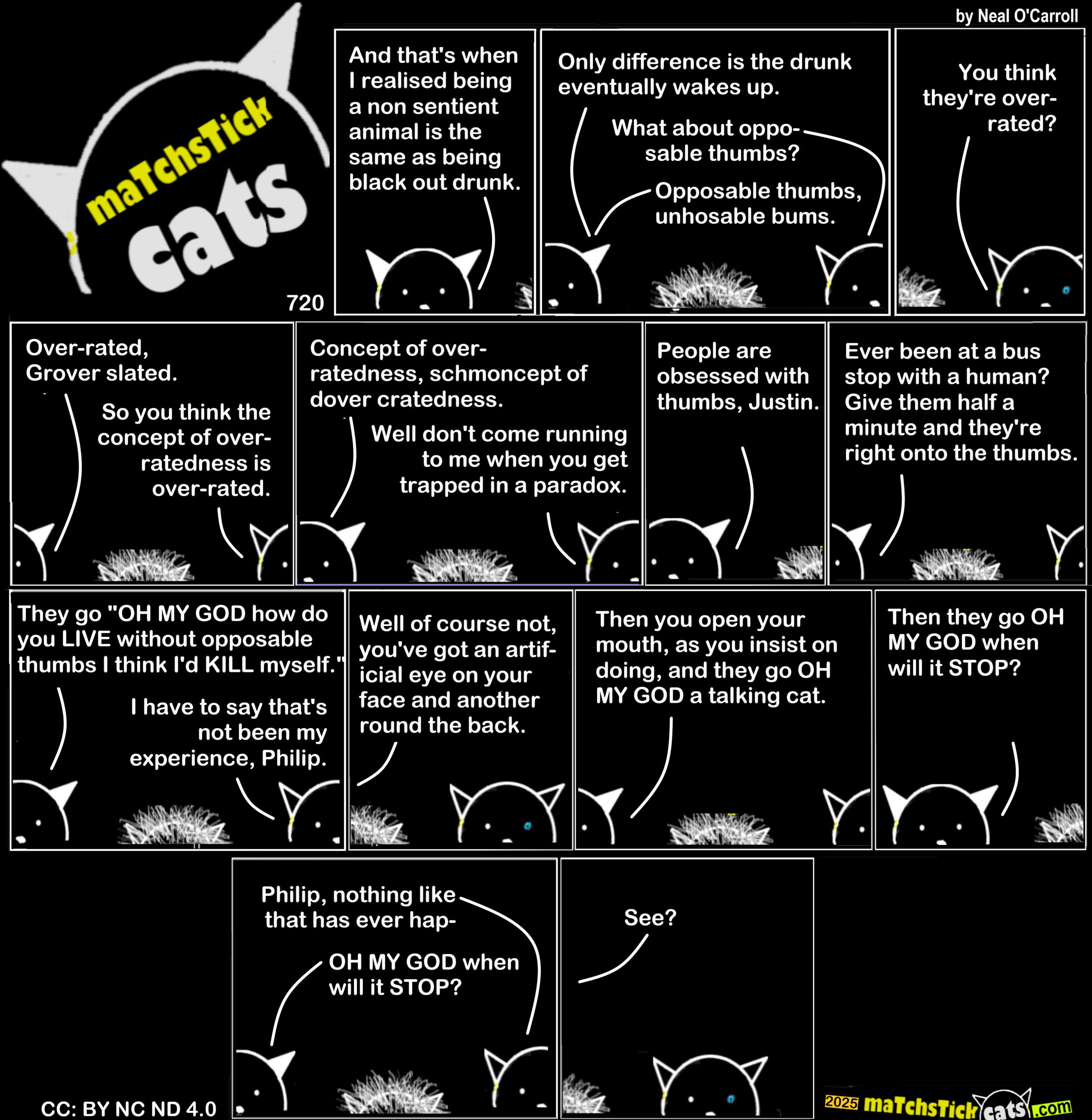Matchstick Cats 720: Thumbs 3 November 202517 January 2026 Share this post: Click to share on Bluesky (Opens in new window) Bluesky Click to share on Threads (Opens in new window) Threads Click to share on X (Opens in new window) X Click to share on Mastodon (Opens in new window) Mastodon Click to share on Facebook (Opens in new window) Facebook Click to share on LinkedIn (Opens in new window) LinkedIn Click to share on Tumblr (Opens in new window) Tumblr Click to share on Reddit (Opens in new window) Reddit Click to share on Pinterest (Opens in new window) Pinterest Click to share on WhatsApp (Opens in new window) WhatsApp Click to share on Pocket (Opens in new window) Pocket